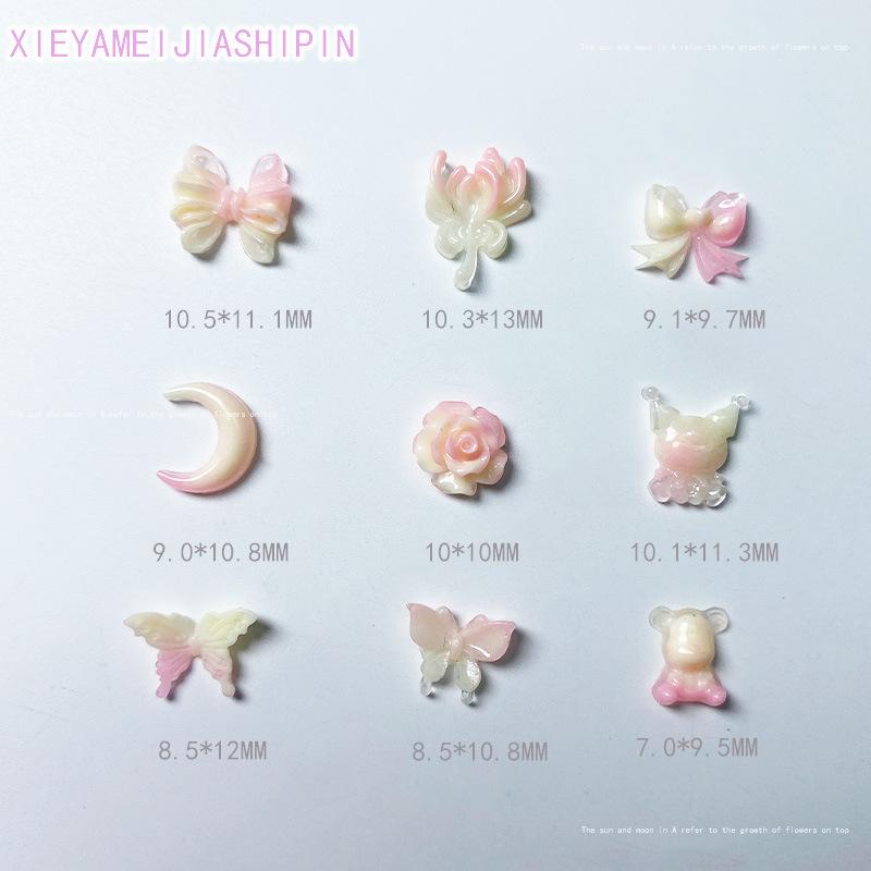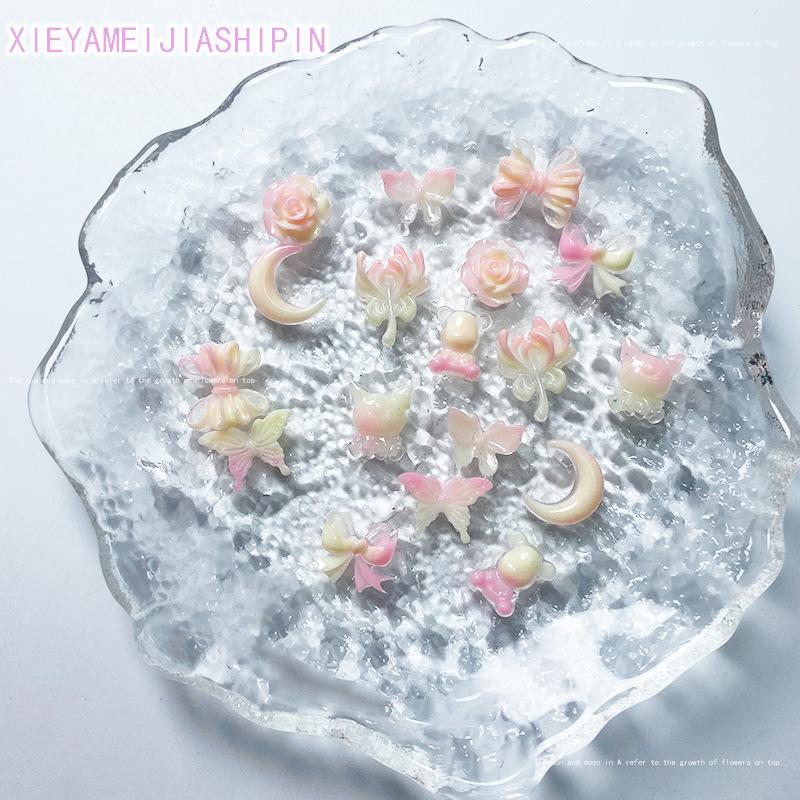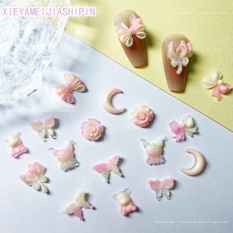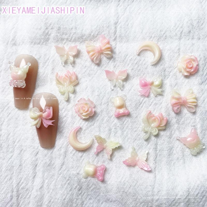 Nuevos accesorios para uñas de crema tipo puff de Tiktok, material mixto para uñas de hadas, paquete de material para uñas con lazo luminoso