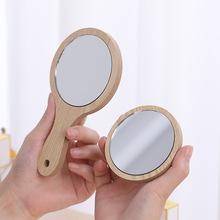 | Espejo de maquillaje de mano salón de belleza espejo de maquillaje de madera portátil con asa espejo de tocador hogar baño espejo pequeño redondo |