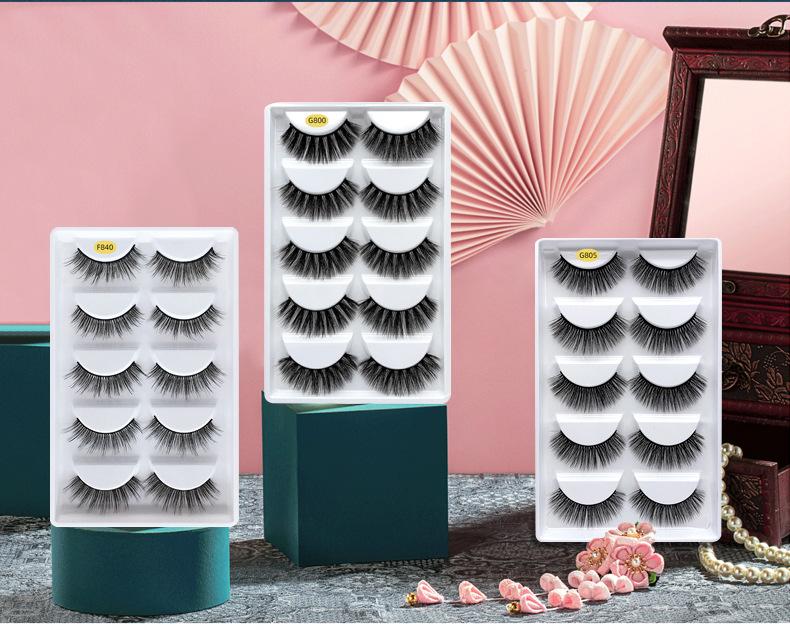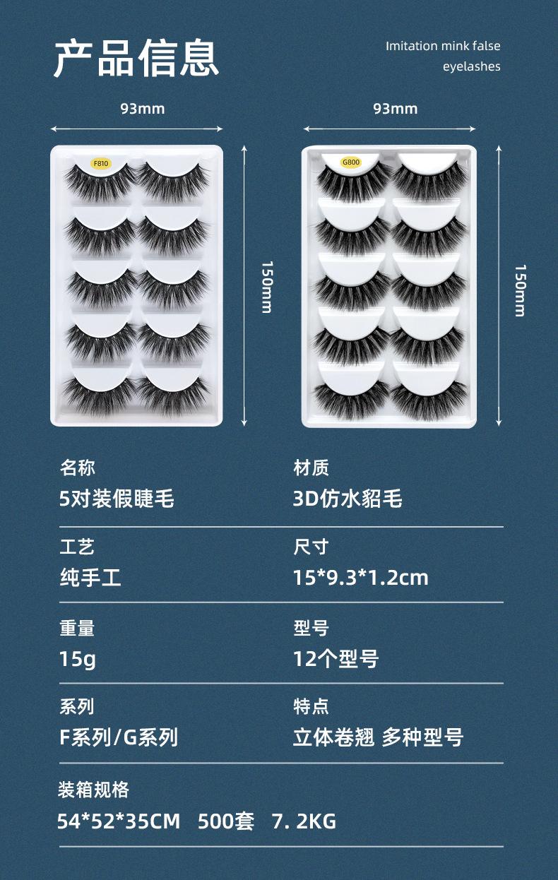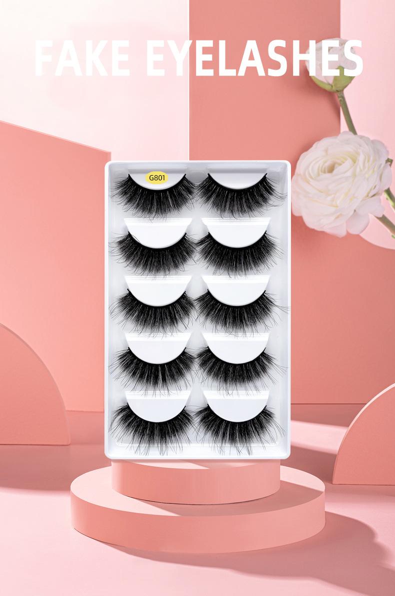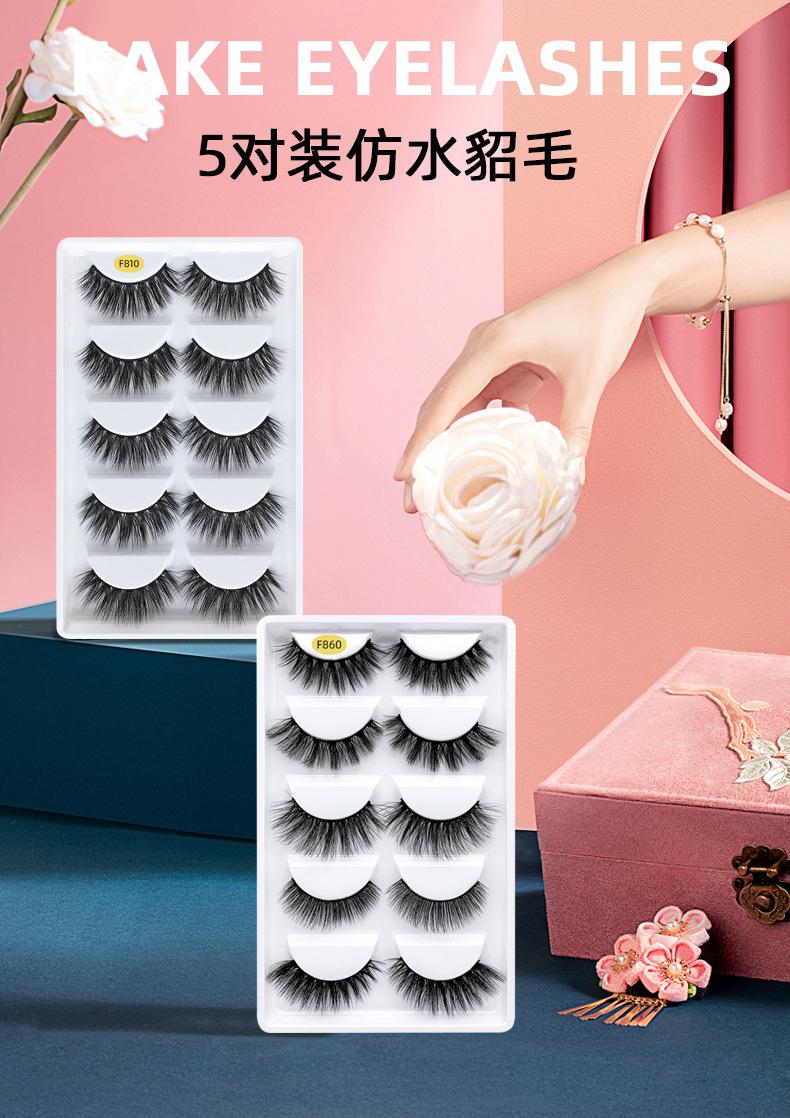 Pestañas postizas gruesas transfronterizas europeas y americanas, cinco pares de pestañas de visón de imitación, una variedad de pestañas rizadas gruesas opcionales