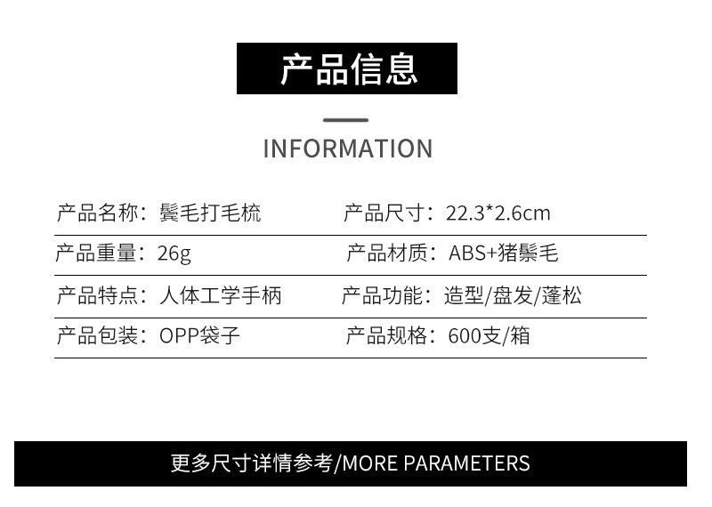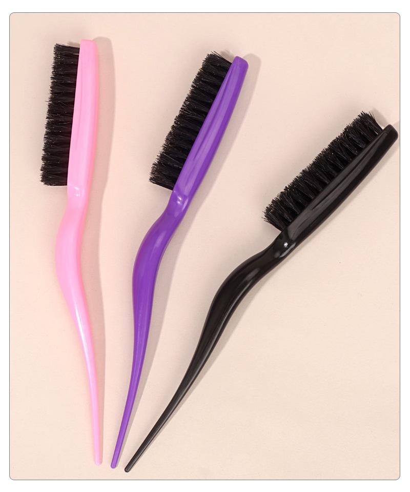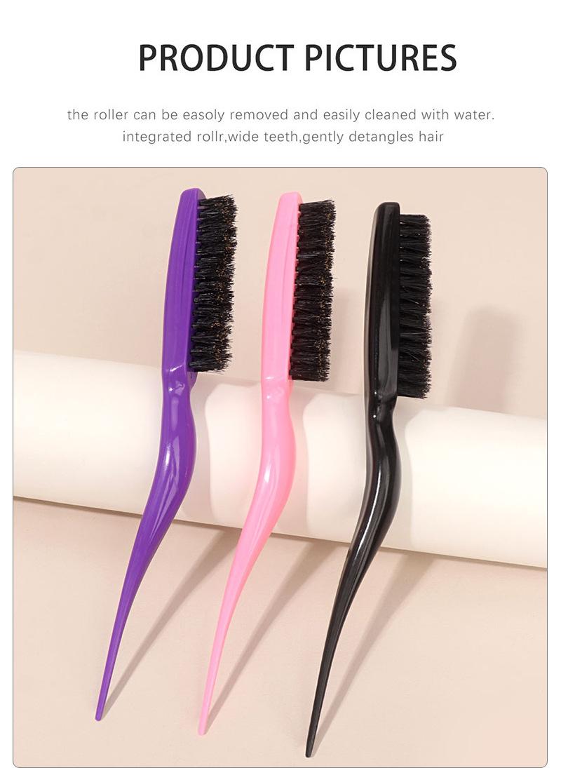 Peine de Belleza Maquillaje Forma Peine para el Cabello Cerda de Cerdo Cabello Rizado Peluquería Peine de Tres Filas Esponjoso Maquillaje de Noche Cola Puntiaguda de Bobina Bolsa Peine para el Cabello