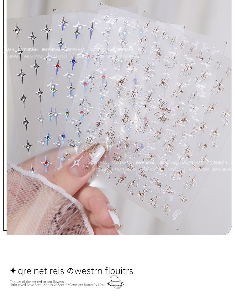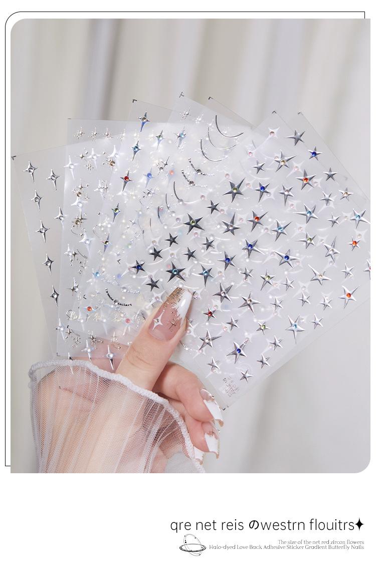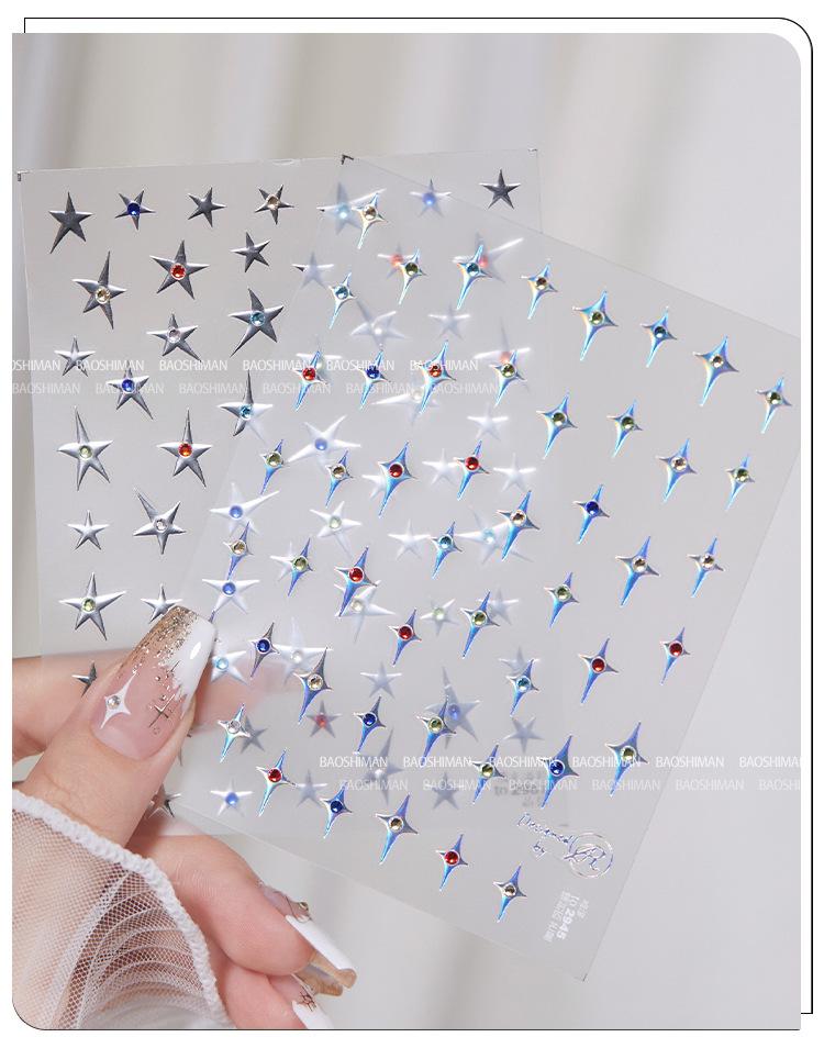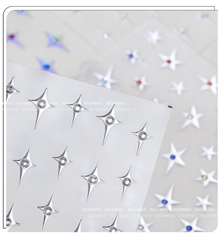 Pegatinas para uñas Red New Star, pegatinas 3D doradas y plateadas con diseño de estrella, accesorios decorativos, joyas