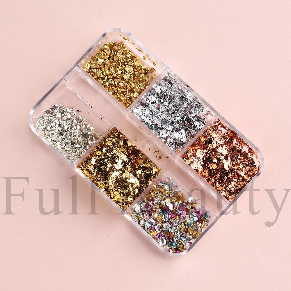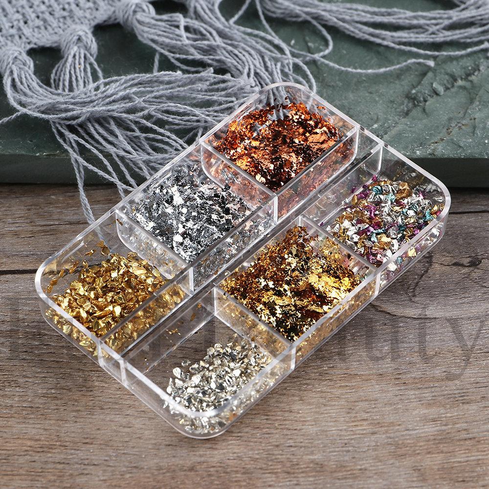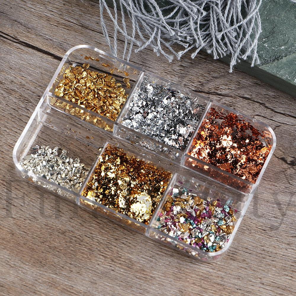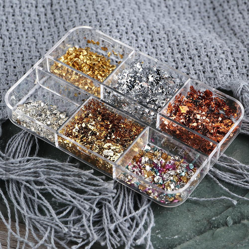 Polvo de Lámina de Oro y Plata Nuevo Transfronterizo Polvo con Brillo para Arte de Uñas Lámina de Oro Grava Papel de Seda Joyería para Uñas Hoja Lentejuelas Venta al por Mayor