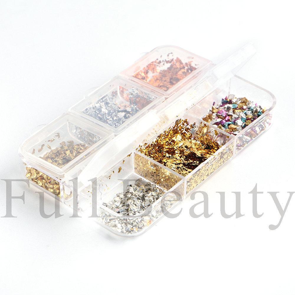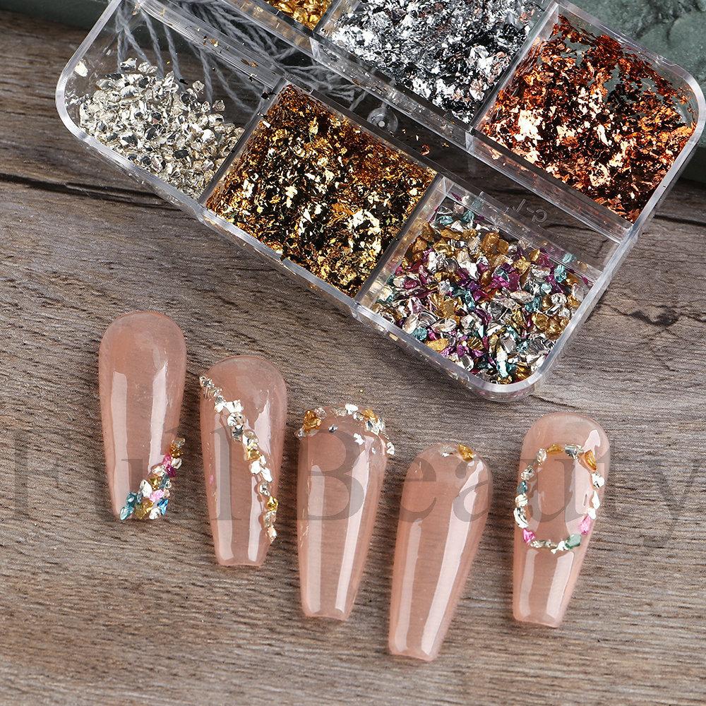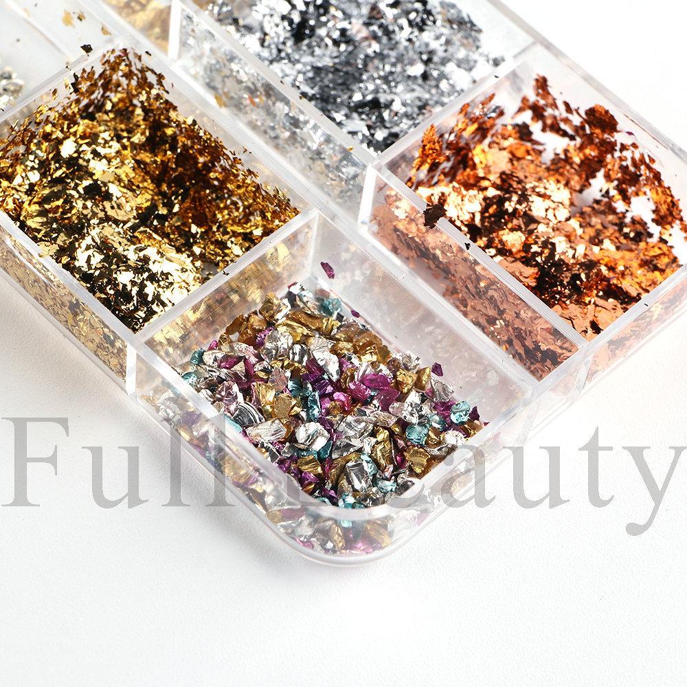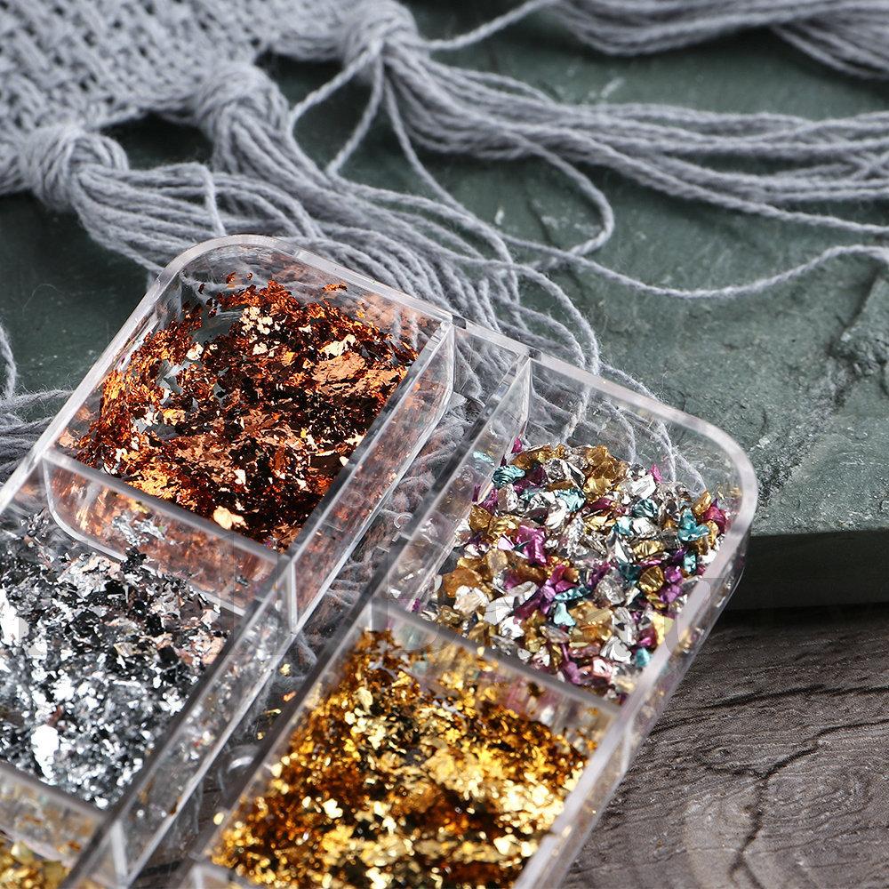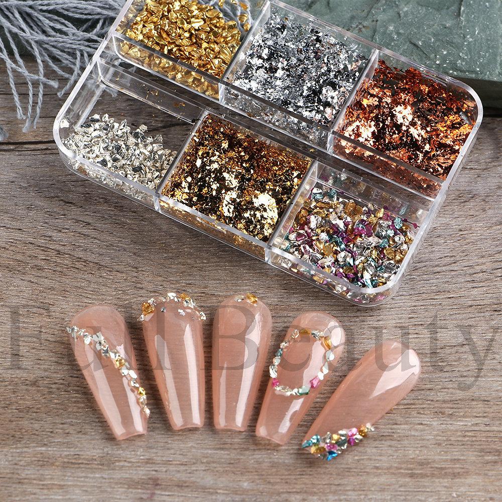 Polvo de Lámina de Oro y Plata Nuevo Transfronterizo Polvo con Brillo para Arte de Uñas Lámina de Oro Grava Papel de Seda Joyería para Uñas Hoja Lentejuelas Venta al por Mayor