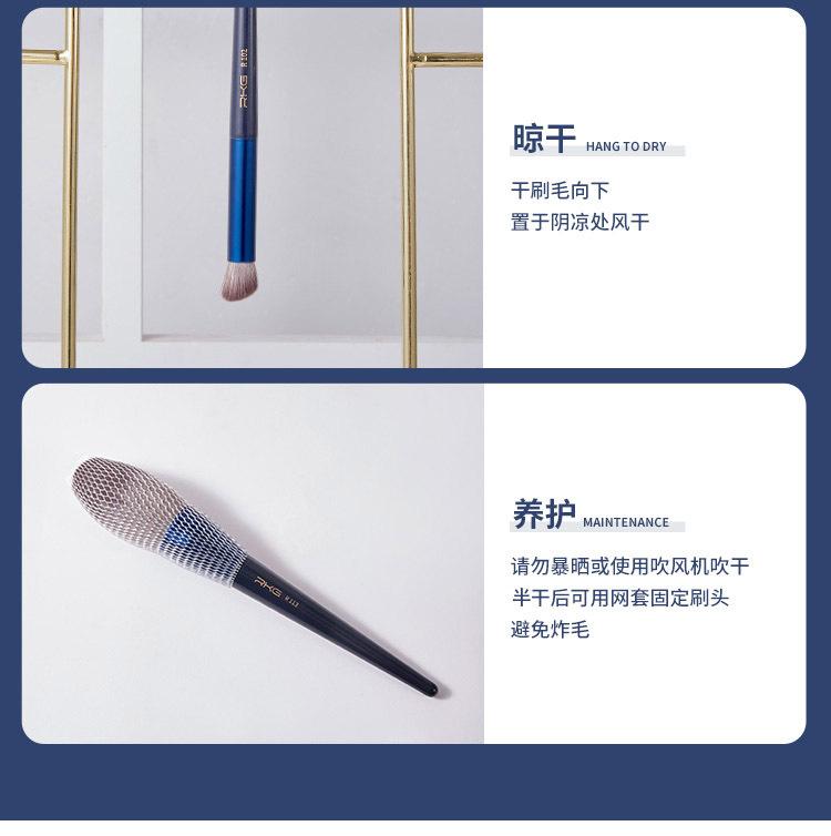 R101-No Mark Concealer Brush, R102-Precision Concealer Brush, R105-round head lip brush, R107-Blade Eyeliner Brush