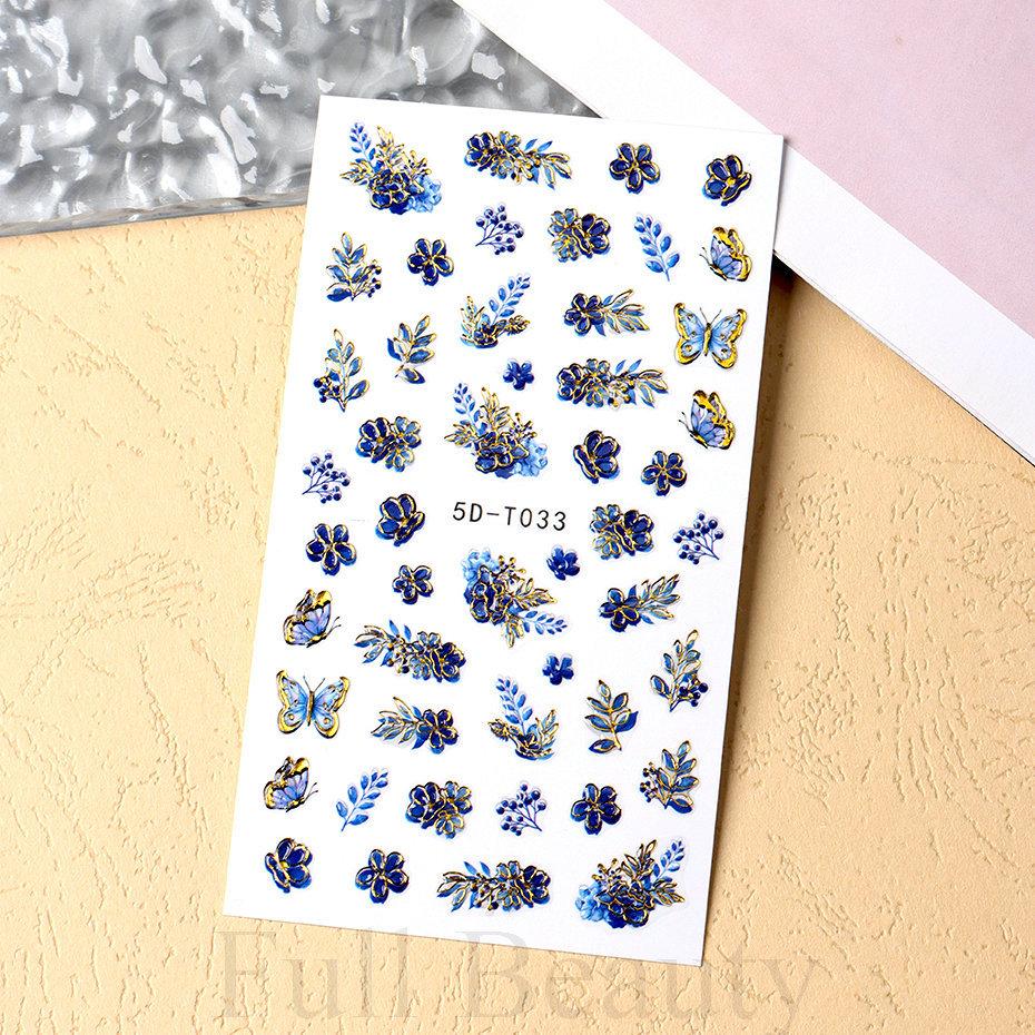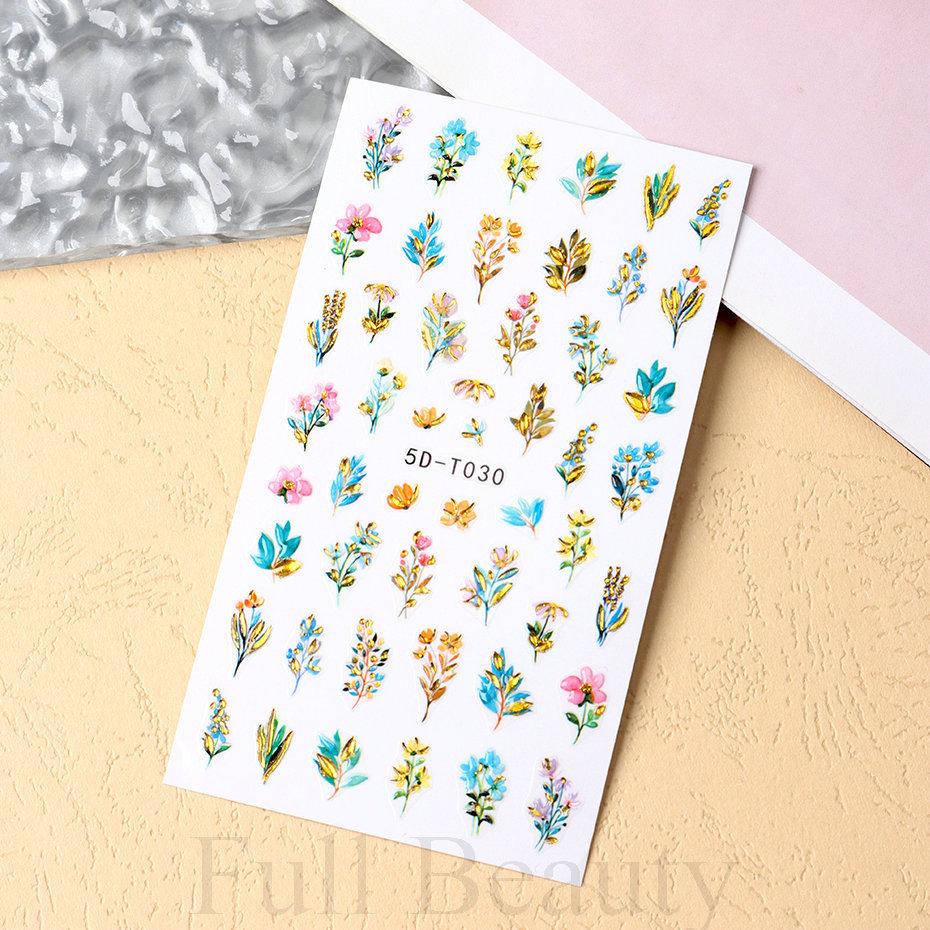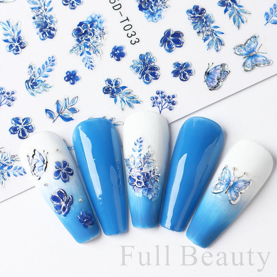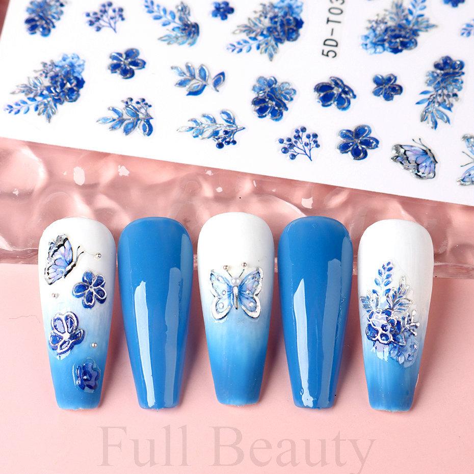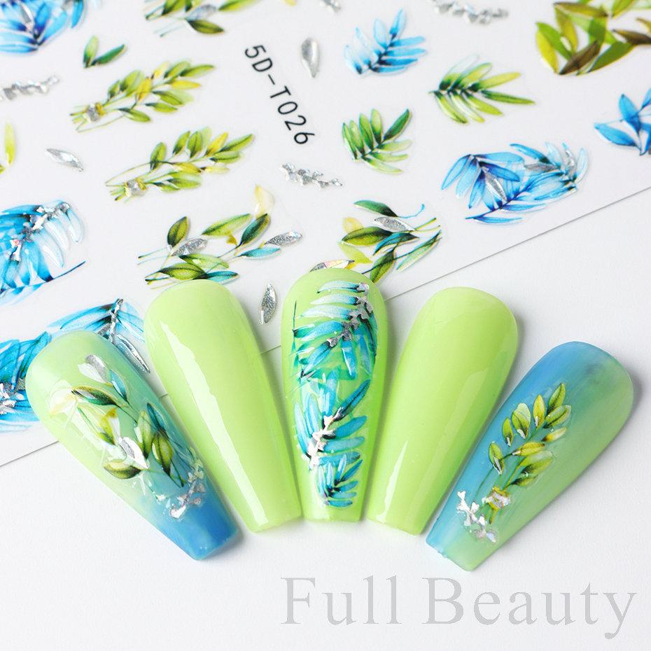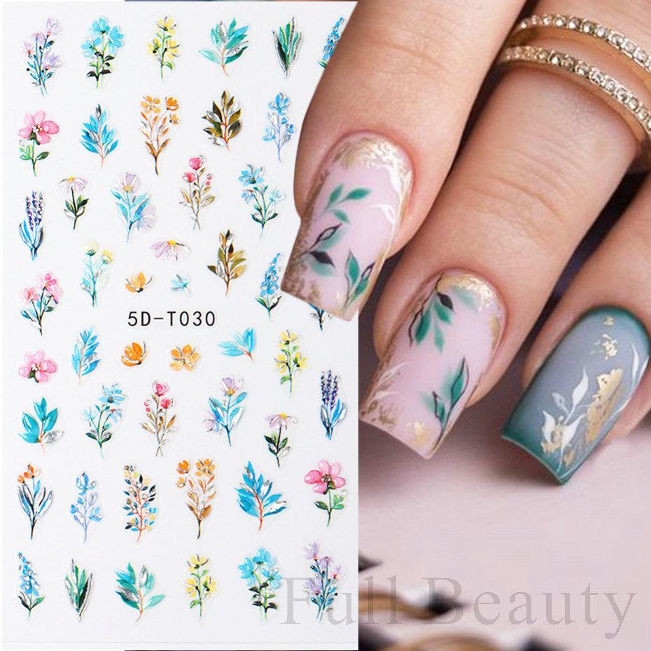 Compra Pegatinas para uñas transfronterizas, nuevas, con relieve 5D, efecto bronceado líquido, flores de verano, azules y verdes, venta al por mayor al por mayor en Joom.pro