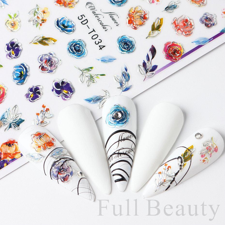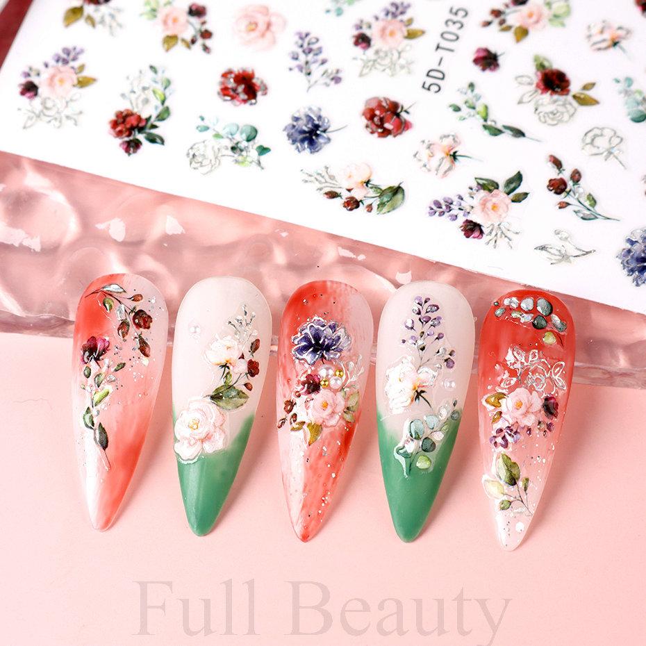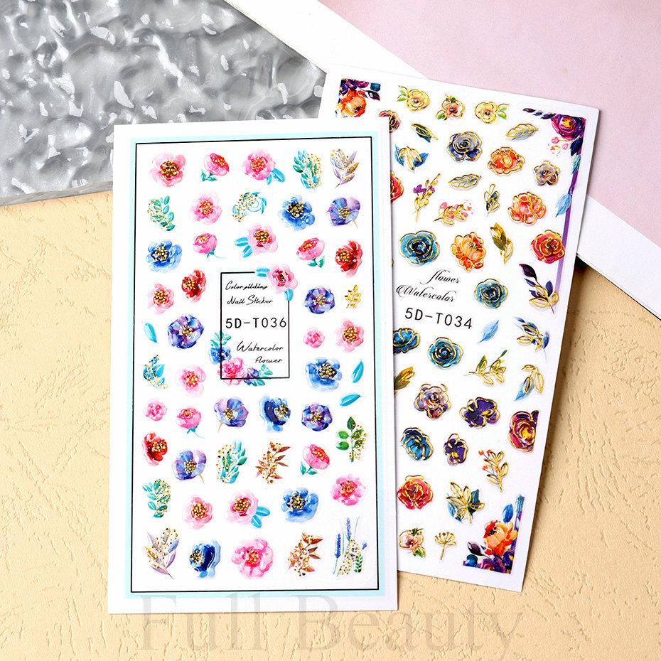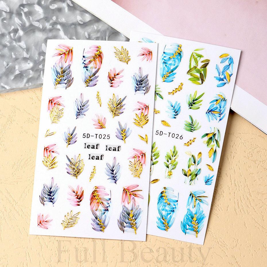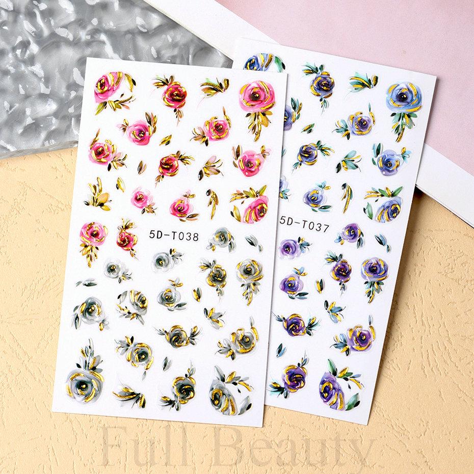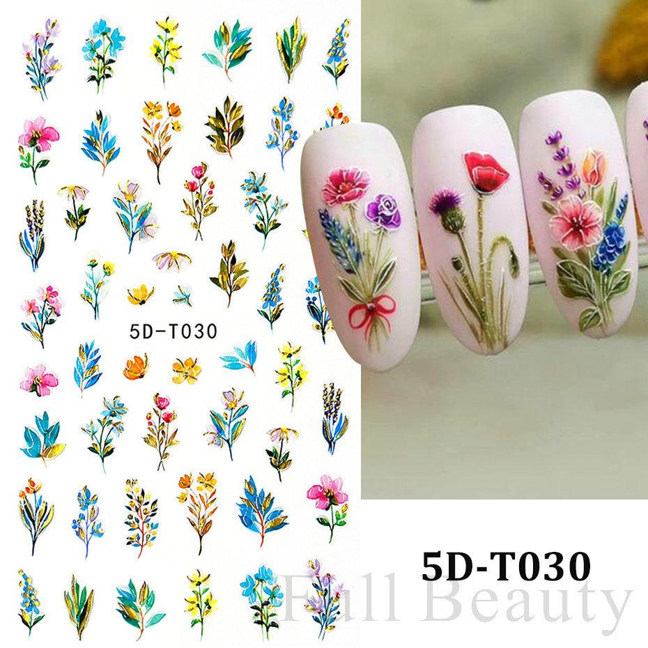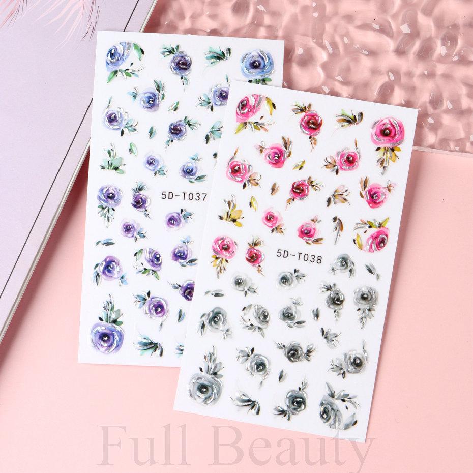 Compra Pegatinas para uñas transfronterizas, nuevas, con relieve 5D, efecto bronceado líquido, flores de verano, azules y verdes, venta al por mayor al por mayor en Joom.pro