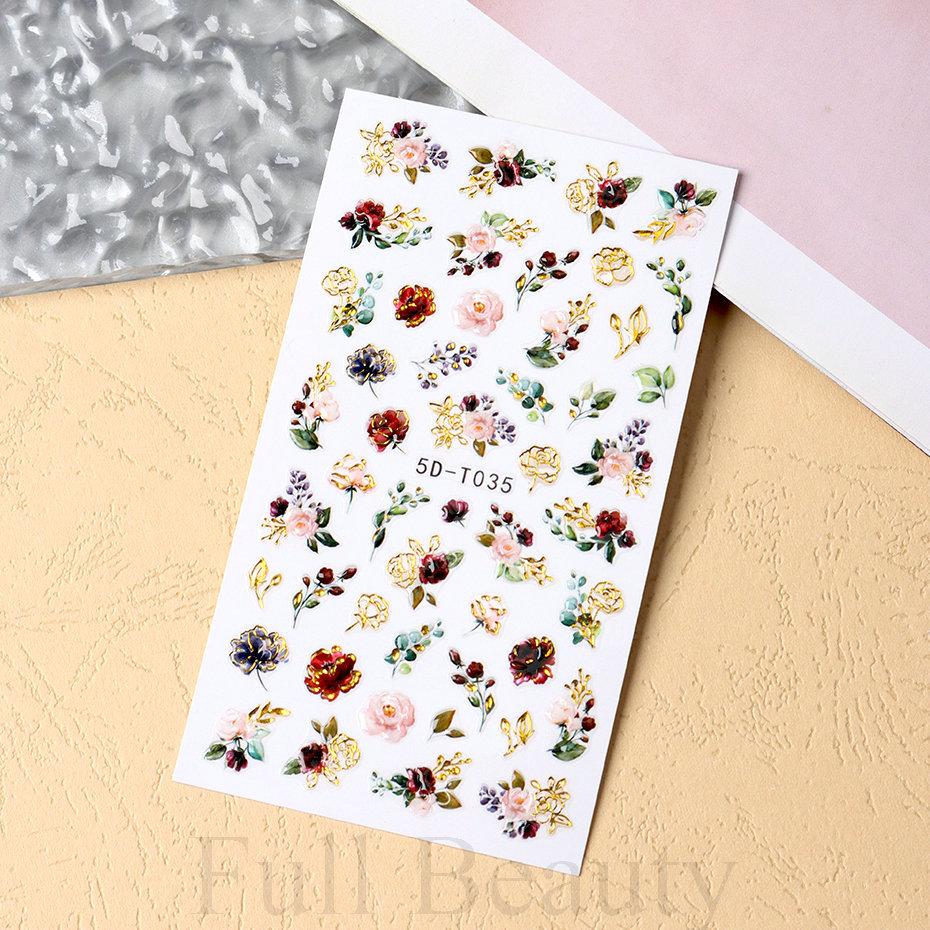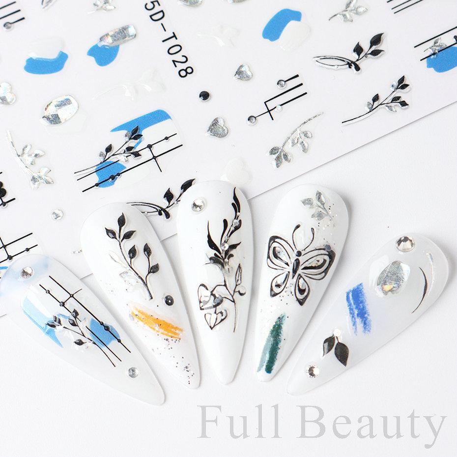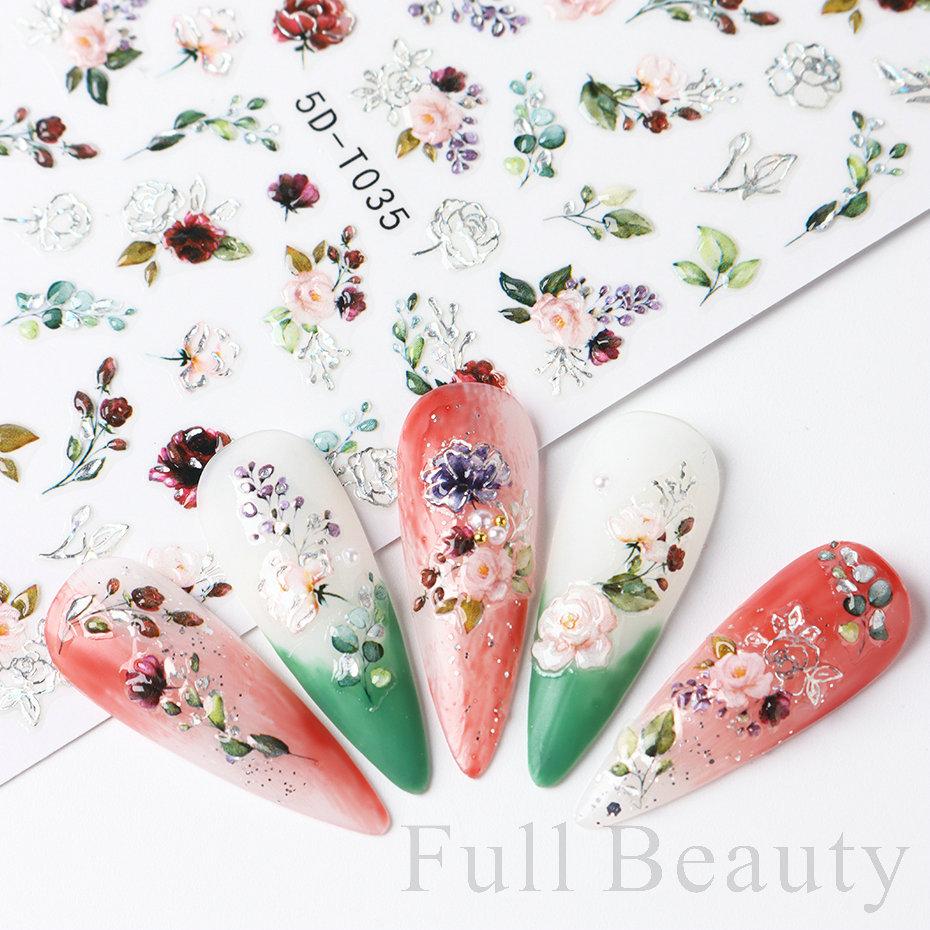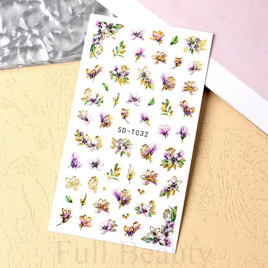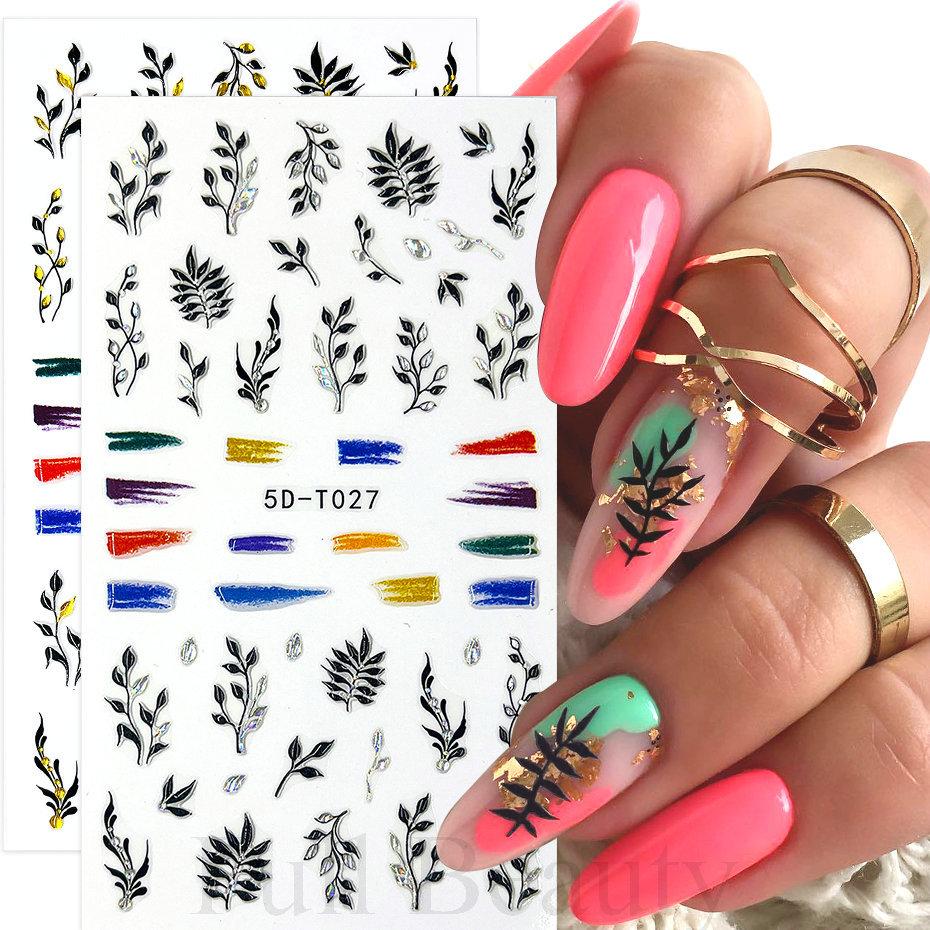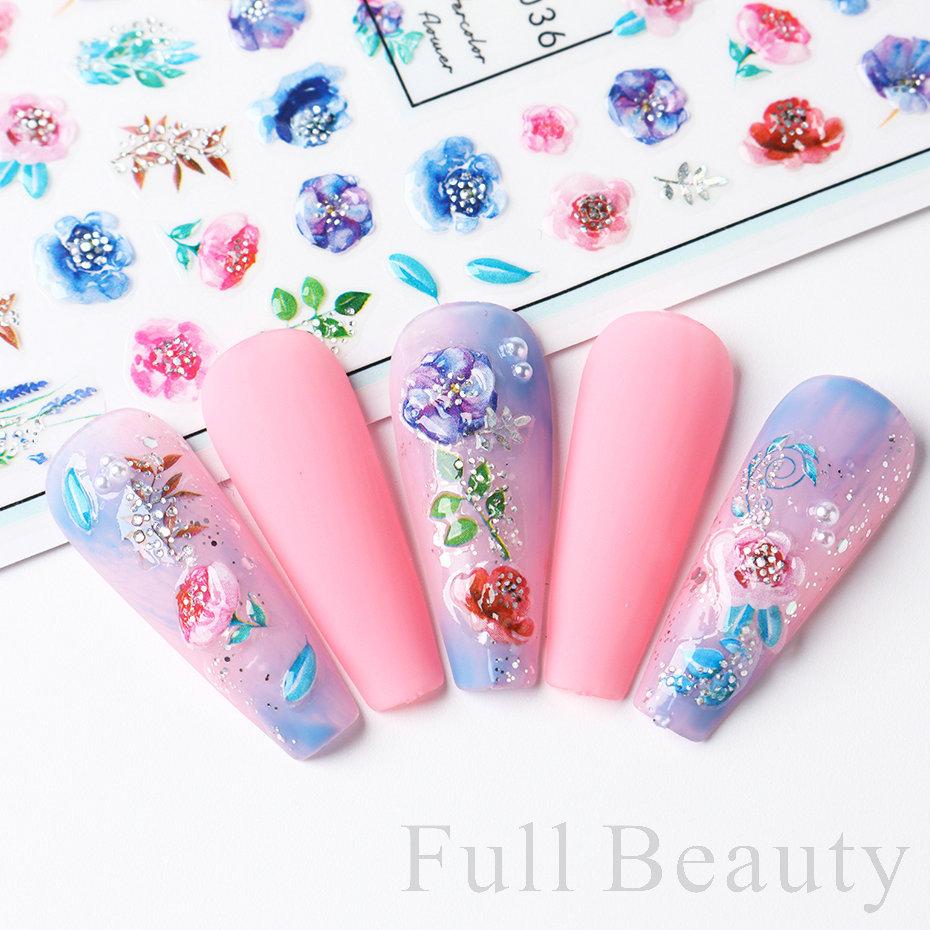 Compra Pegatinas para uñas transfronterizas, nuevas, con relieve 5D, efecto bronceado líquido, flores de verano, azules y verdes, venta al por mayor al por mayor en Joom.pro