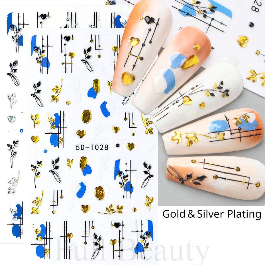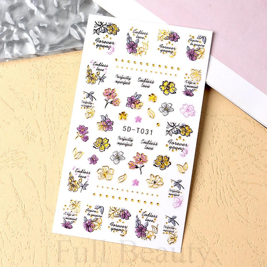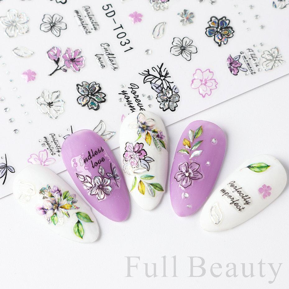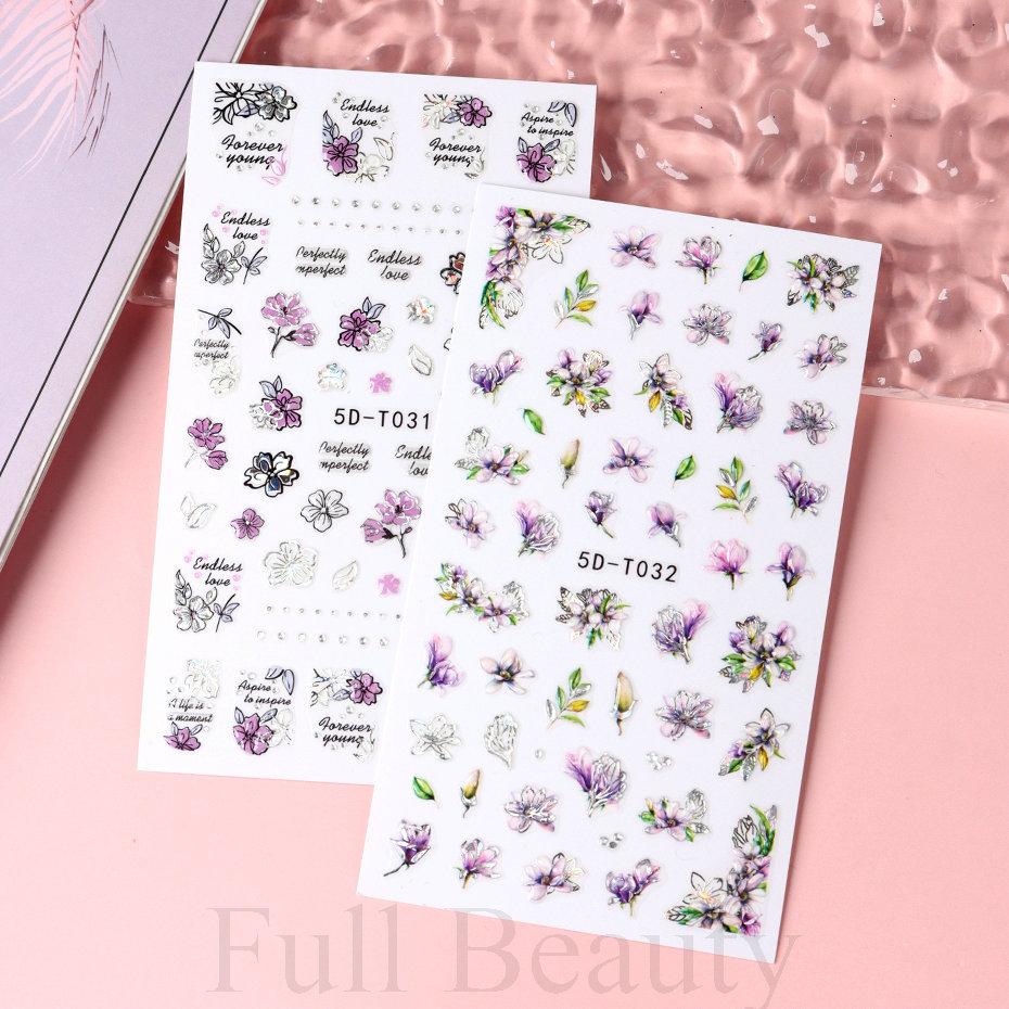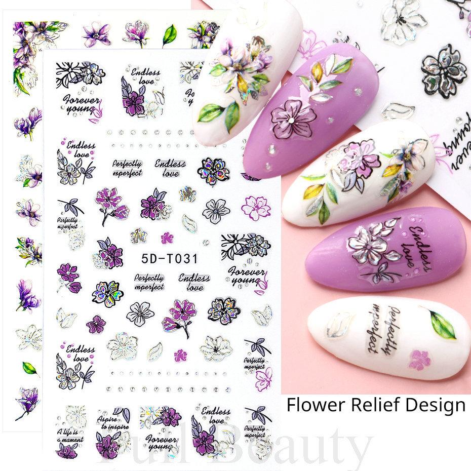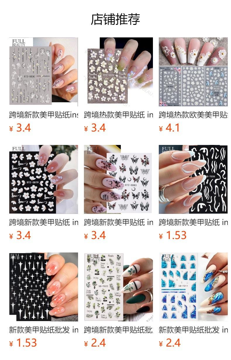 Compra Pegatinas para uñas transfronterizas, nuevas, con relieve 5D, efecto bronceado líquido, flores de verano, azules y verdes, venta al por mayor al por mayor en Joom.pro