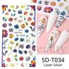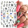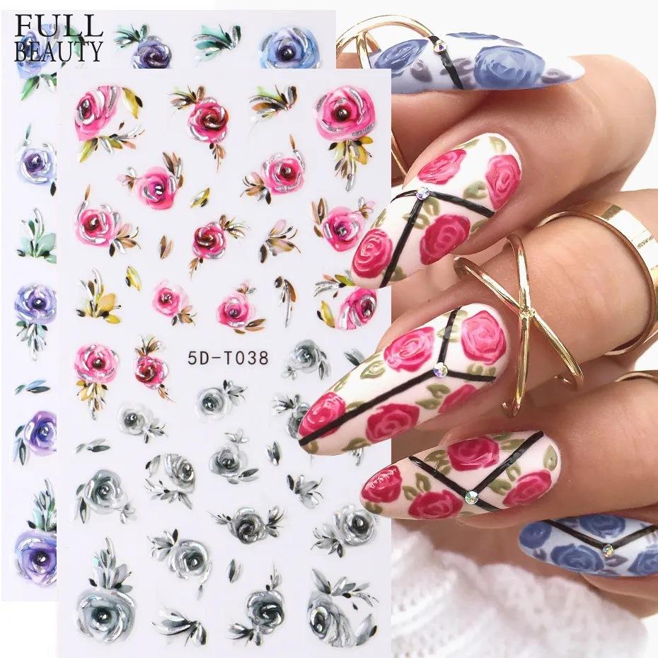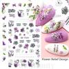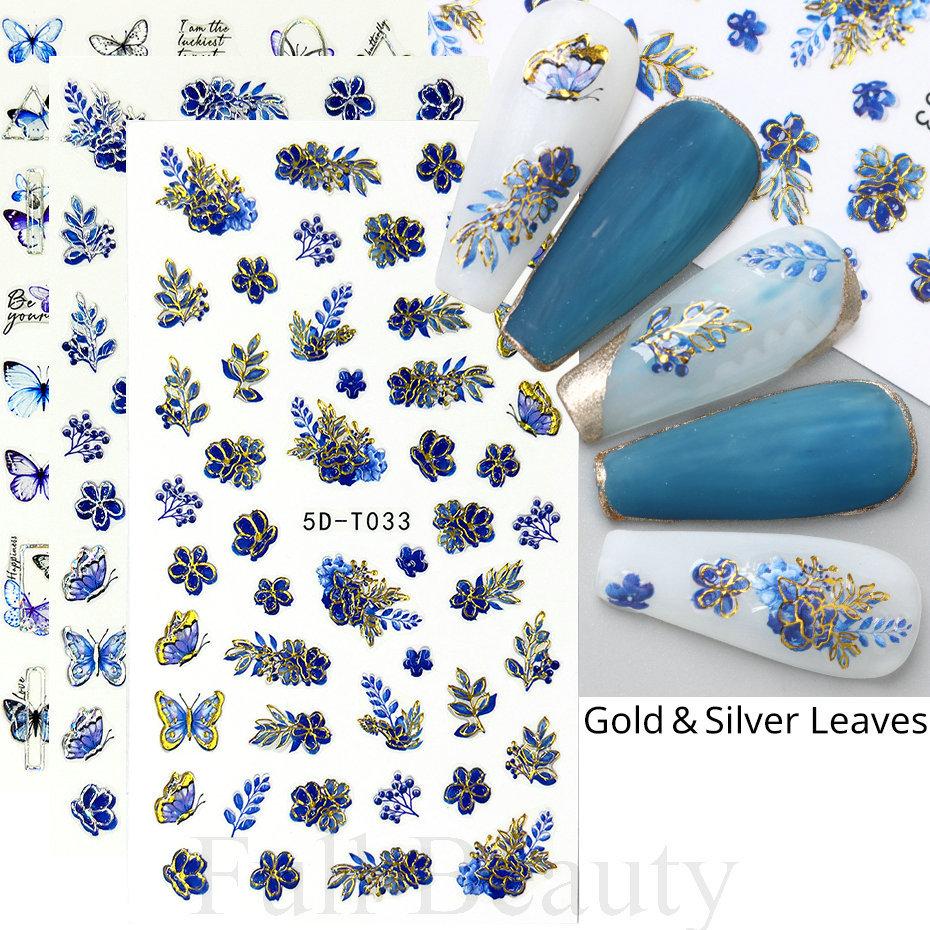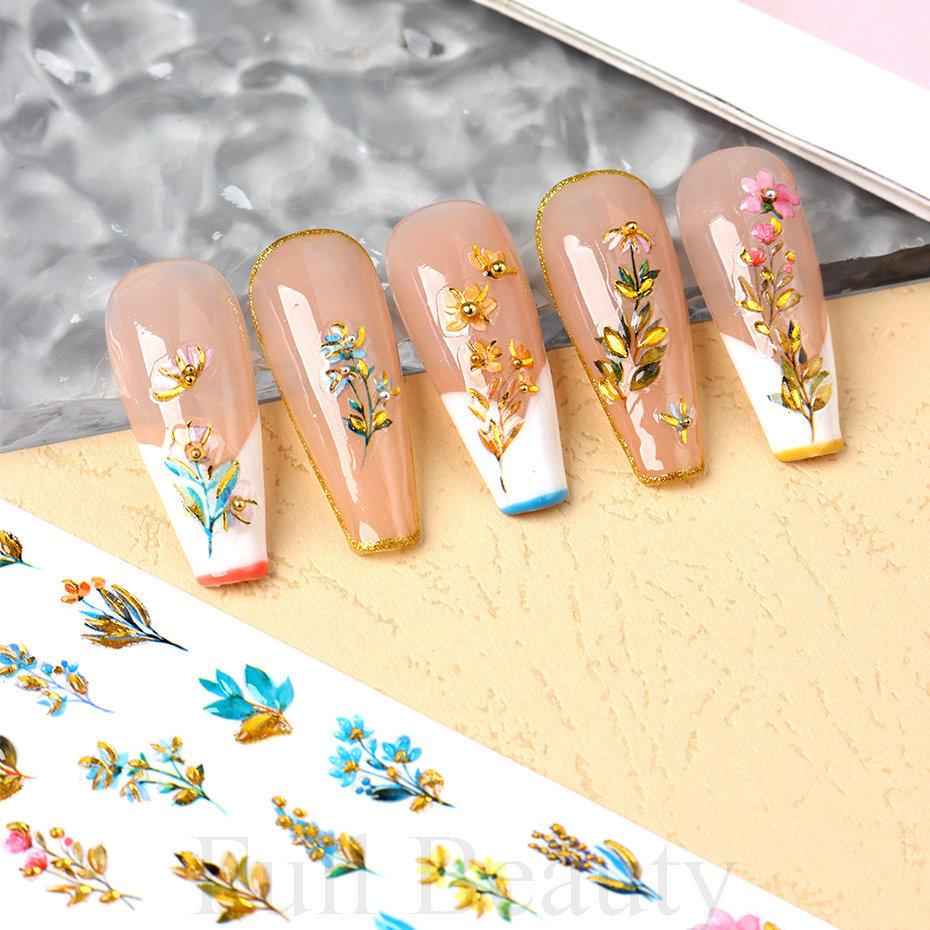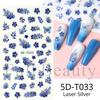 Pegatinas para uñas transfronterizas, nuevas, con relieve 5D, efecto bronceado líquido, flores de verano, azules y verdes, venta al por mayor