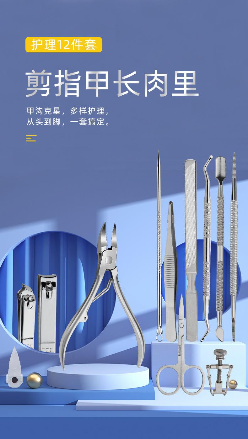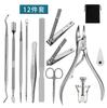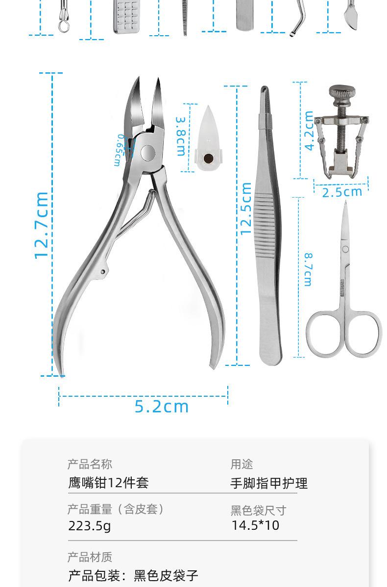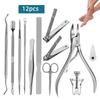 Fabricantes de cortaúñas de acero inoxidable, juego de 12 piezas de enderezador de uñas portátil para incrustaciones, cortaúñas para olécranon, herramientas para limar uñas de doble cabezal
