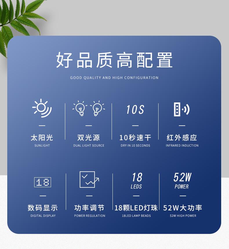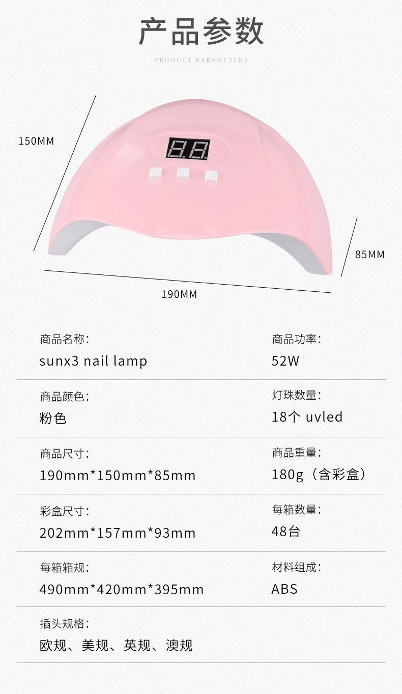 Lámpara de manicura para hornear de 52 W, máquina de fototerapia con doble fuente de luz, lámpara UV, secador de uñas no negro, máquina de fototerapia de secado rápido, transfronterizo