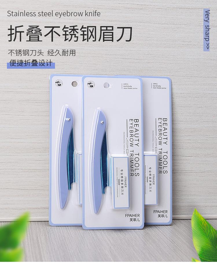 Soporte plegable para recortador de cejas, afeitadora de cejas, 10 cuchillas reemplazables, juego de recortador de cejas, herramientas de belleza, fábrica al por mayor