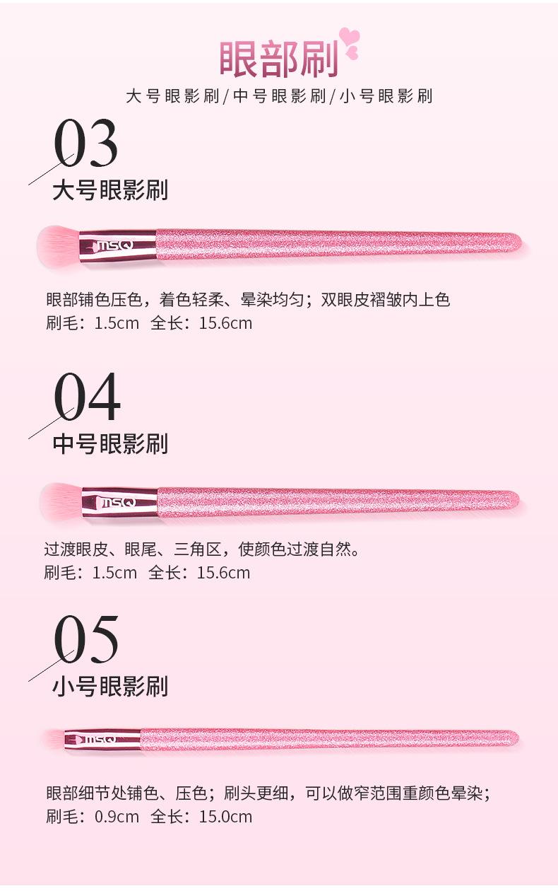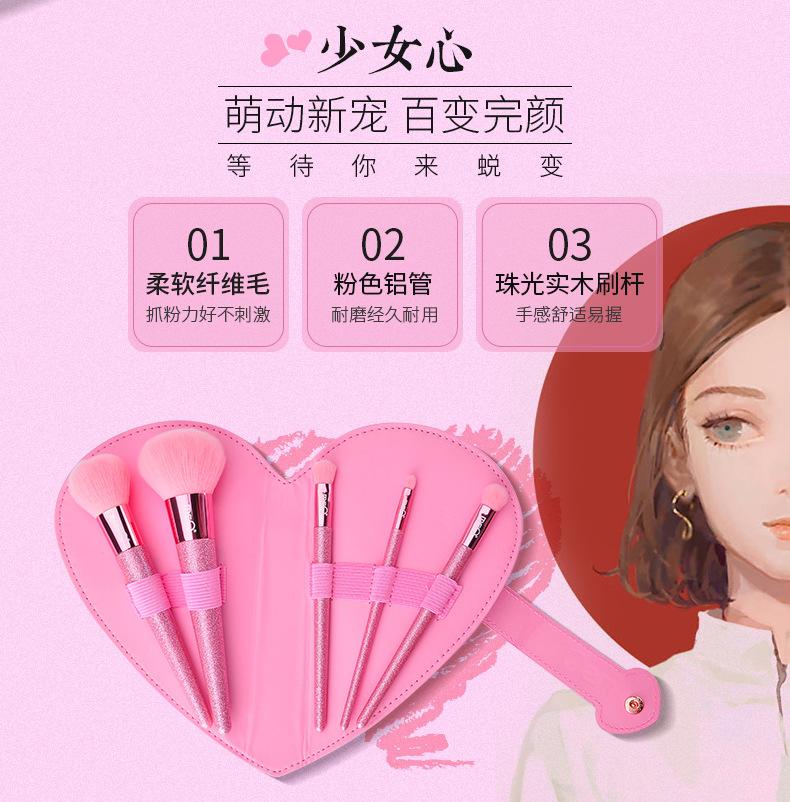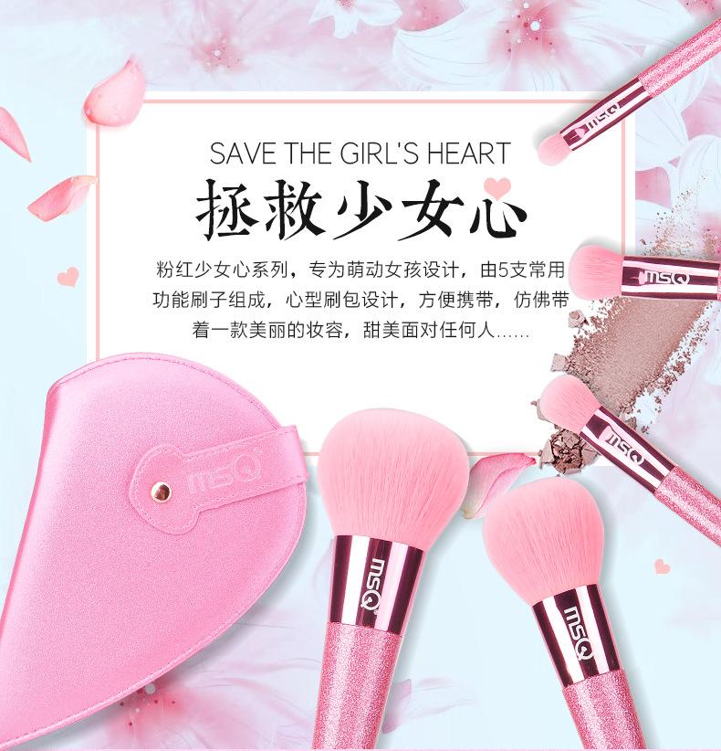 MSQ/meisko 5 set de brochas de maquillaje corazón de niña set completo para principiantes pintura bolsa de maquillaje brocha portátil