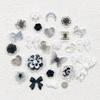Joyería clásica para decoración de uñas en blanco y negro, diseño de camelia, mariposa, oso de amor, material para decoración de uñas, accesorios DIY en vivo