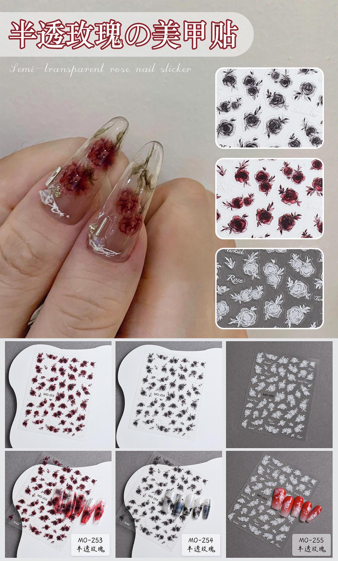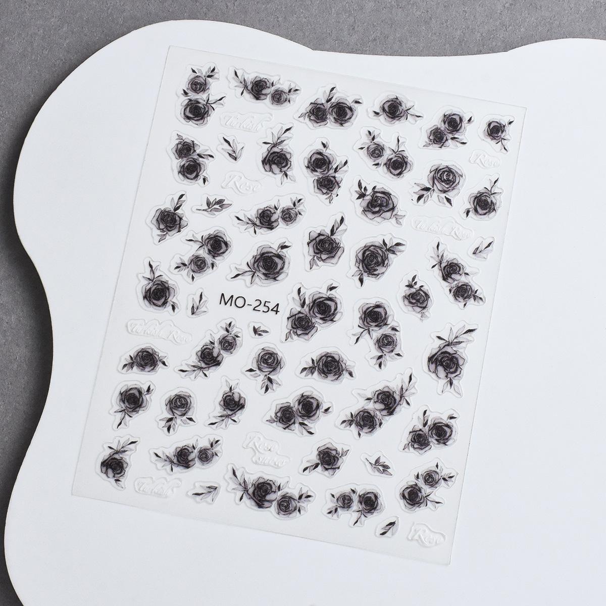 Calcomanía para Uñas de Arte de Rosa con Renderizado Pintado a Mano Blanco y Negro Retro Gótico Semitransparente Flor Adhesivo Fino Resistente Calcomanía para Uñas
