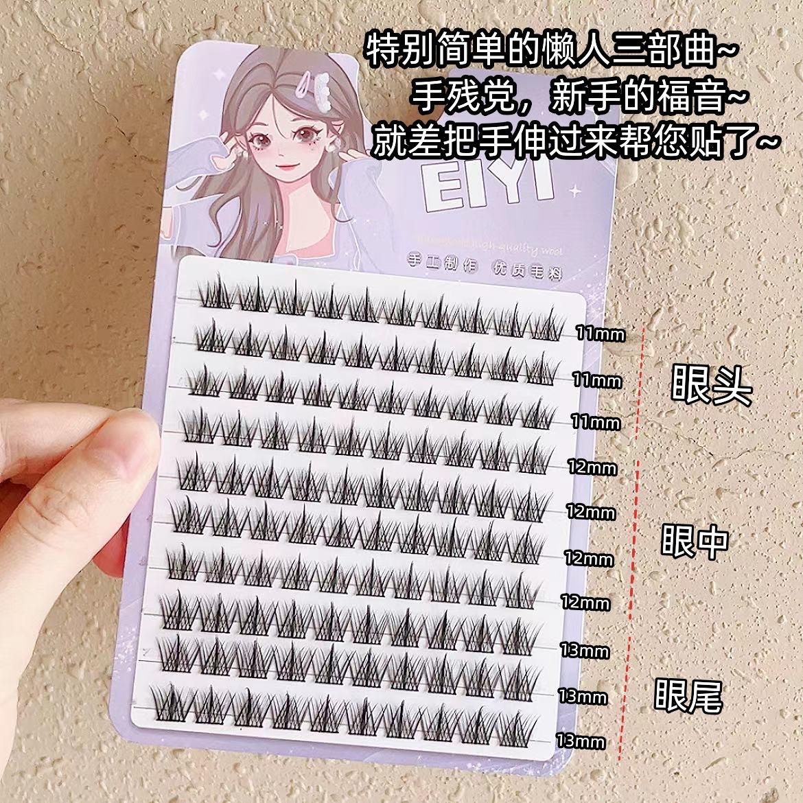 Pestañas postizas EIYI Lazy Trilogy, de imitación natural, para mujer, de un solo grupo, segmentadas, autoinjertadas, con forma de girasol.