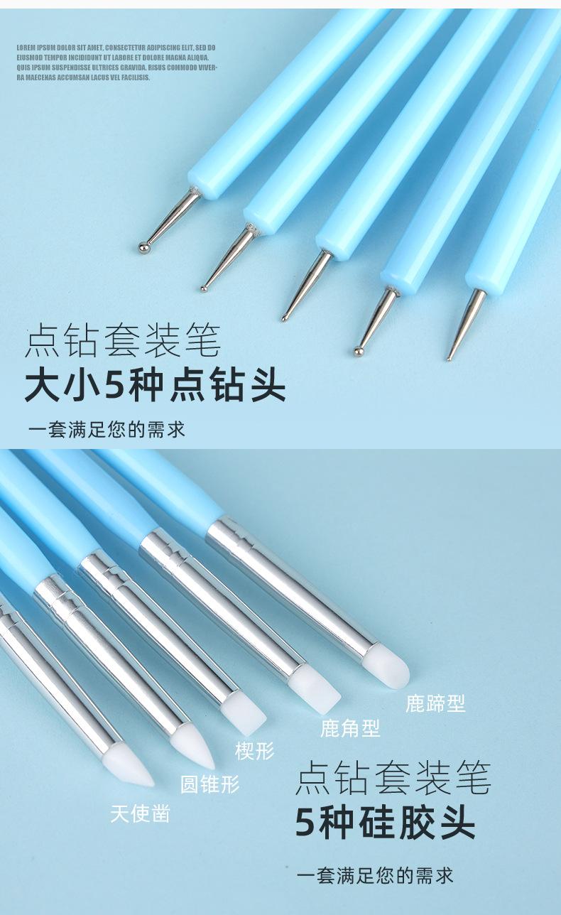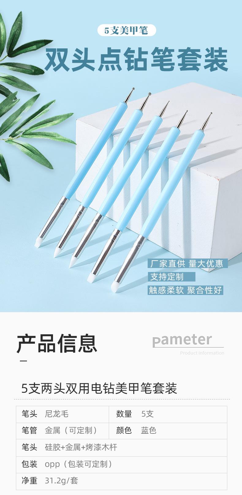 Bolígrafo para punteado de uñas de doble cabezal, 5 piezas, acrílico transfronterizo, de doble propósito, bolígrafo, aguja para punteado, venta al por mayor