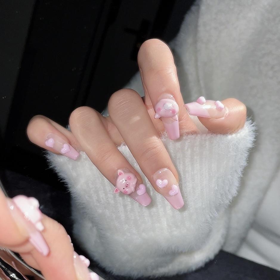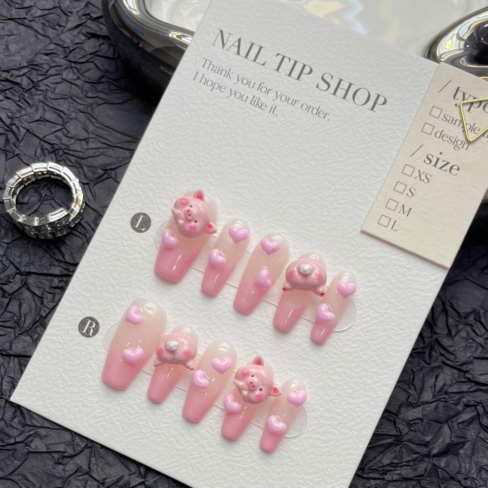 Uñas postizas hechas a mano francesas tridimensionales tostadas soleadas cerdo desmontables uña uña parche uña longitud media