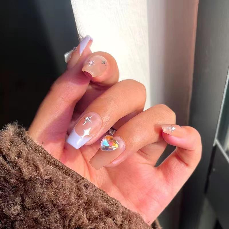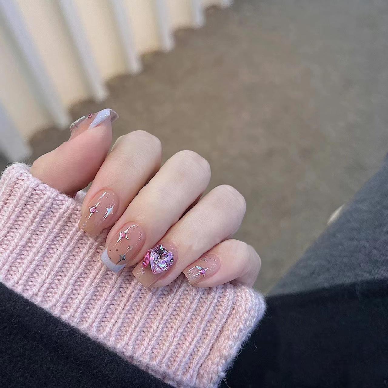 Arte de uñas hecho a mano Parche de uñas Arte de uñas Terminado Verano Fresco Estrellas Rojo Montar Libro Estudiante Corto