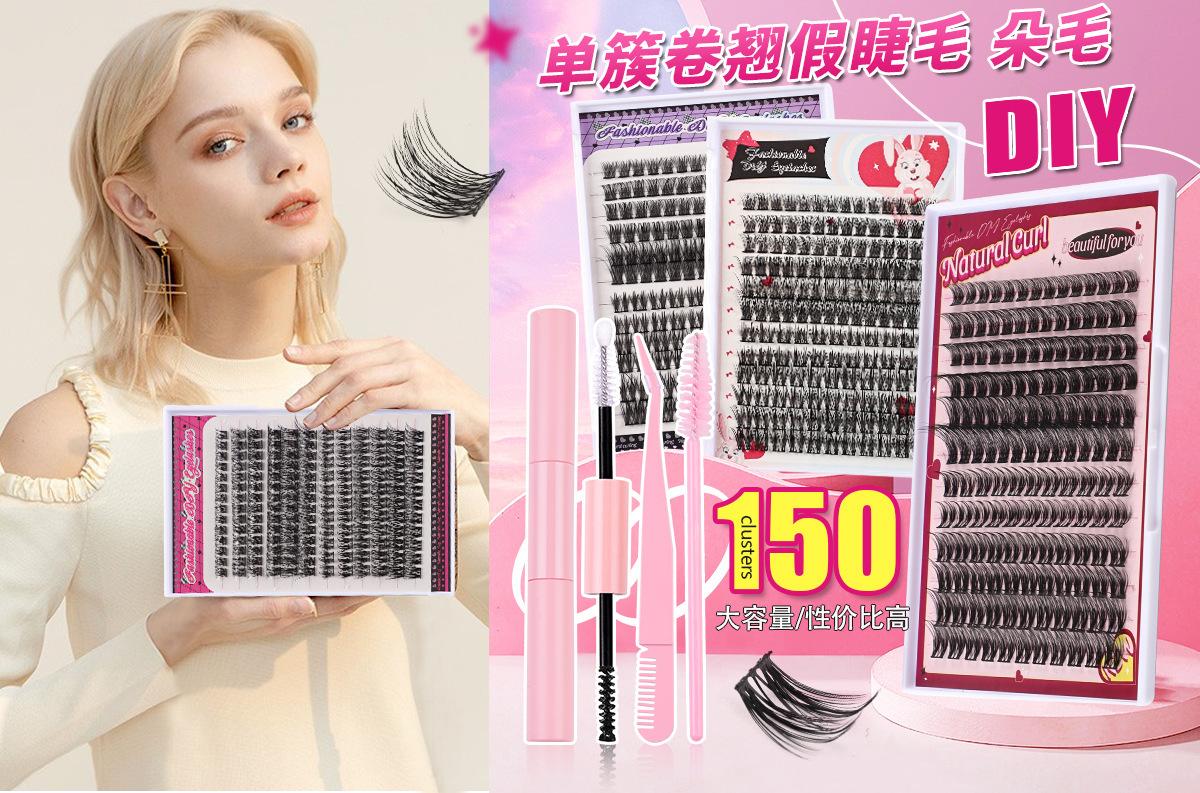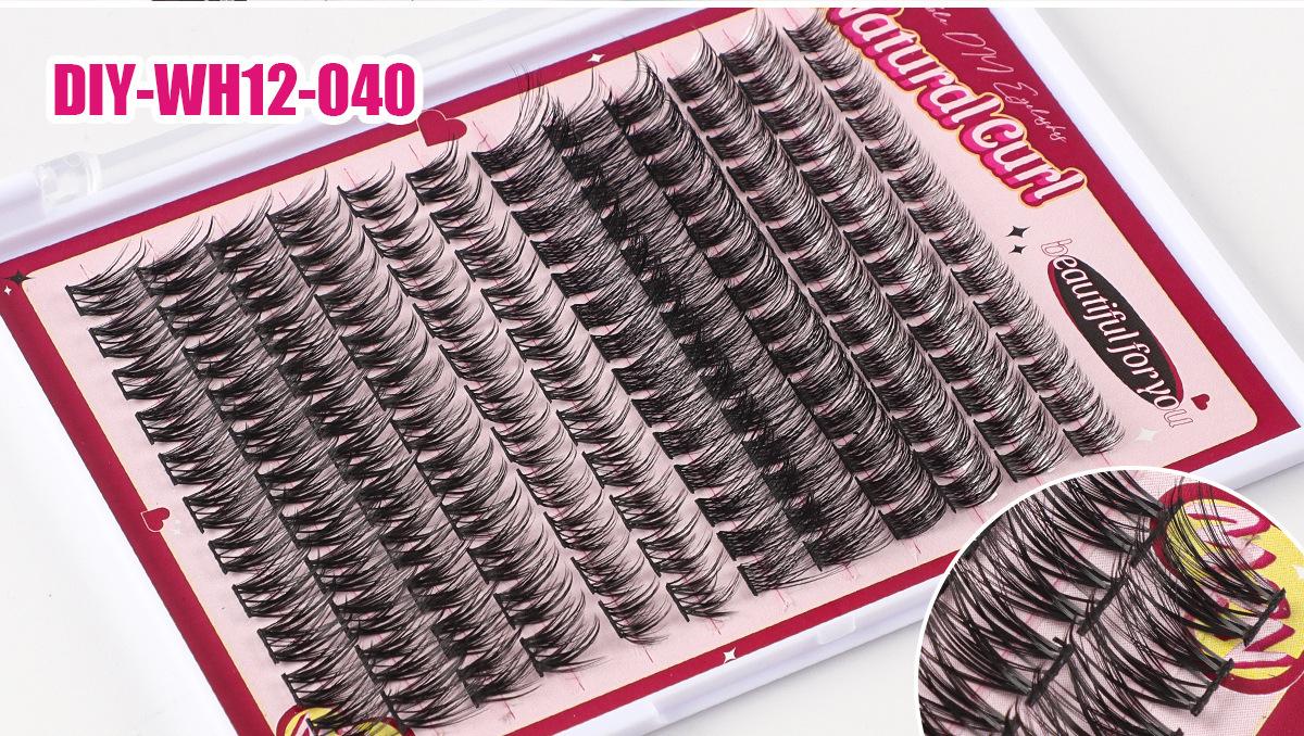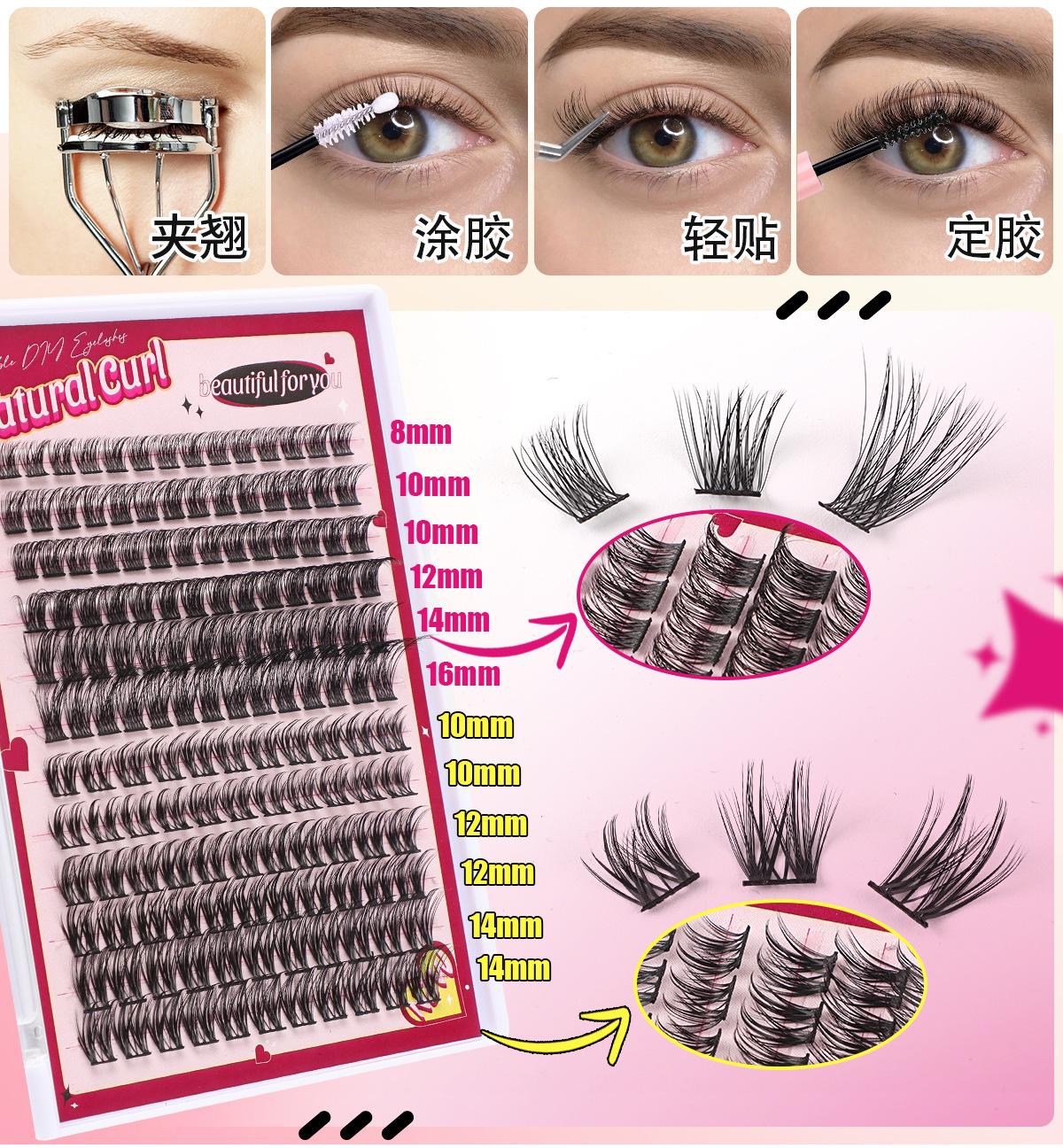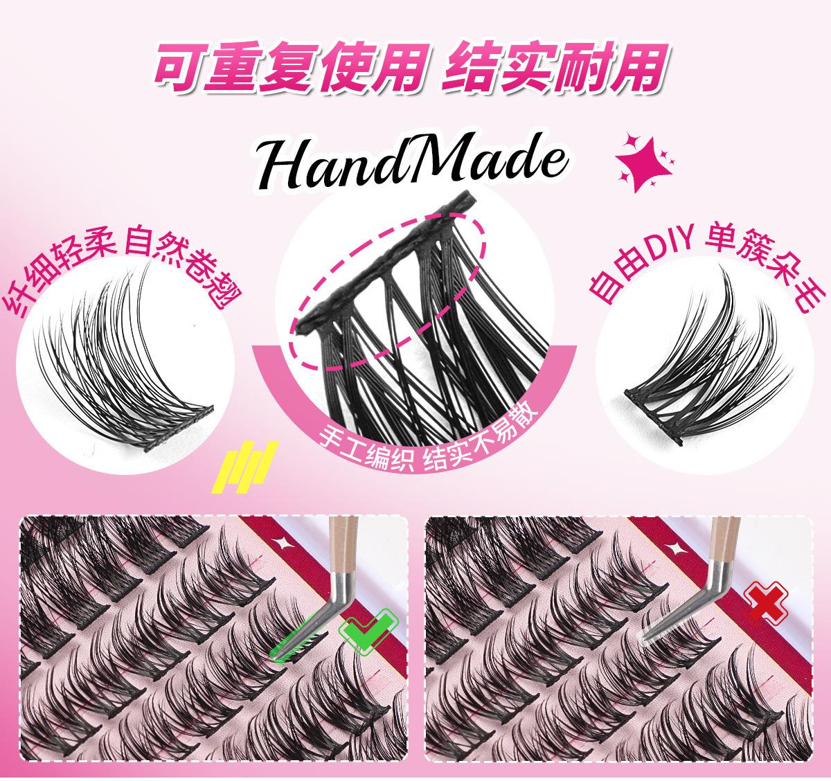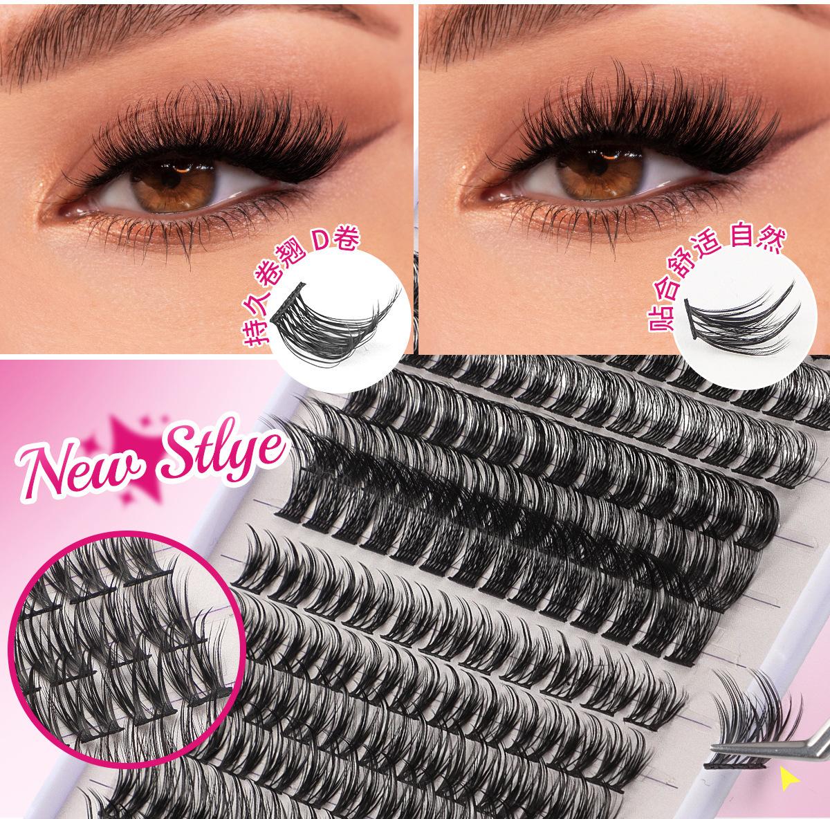 Pestañas postizas europeas y americanas de gran venta transfronterizas, gruesas, rizadas, de gran capacidad, para bricolaje, juego de pestañas segmentadas con injerto de cabello de un solo grupo.