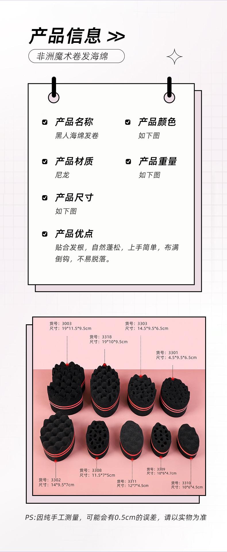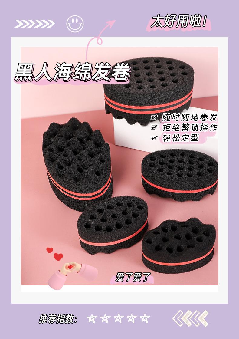 Esponja Negra para Cabello Rizado Magia Africana Esponja Caliente Algodón Rizado Agujero Pequeño Ovalado Herramienta para Cabello Rizado