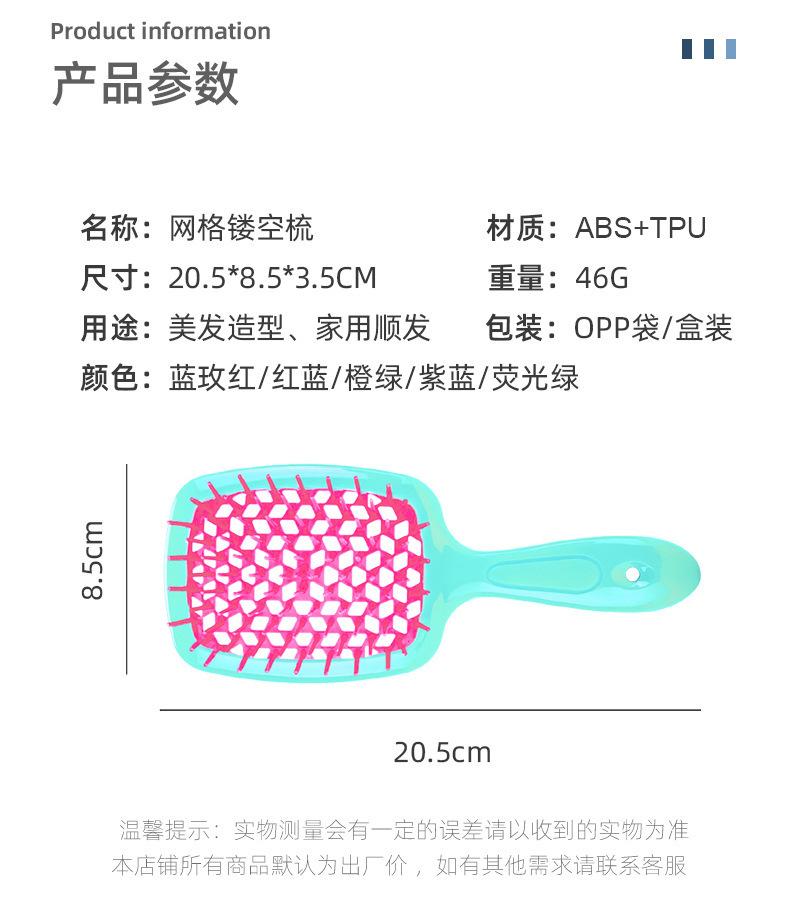 Peine de masaje multicolor personalizado para cabello liso, peine hueco para soplado de cabello, peine de secado rápido, peine de malla de panal