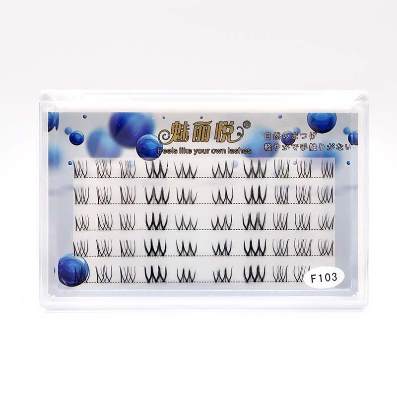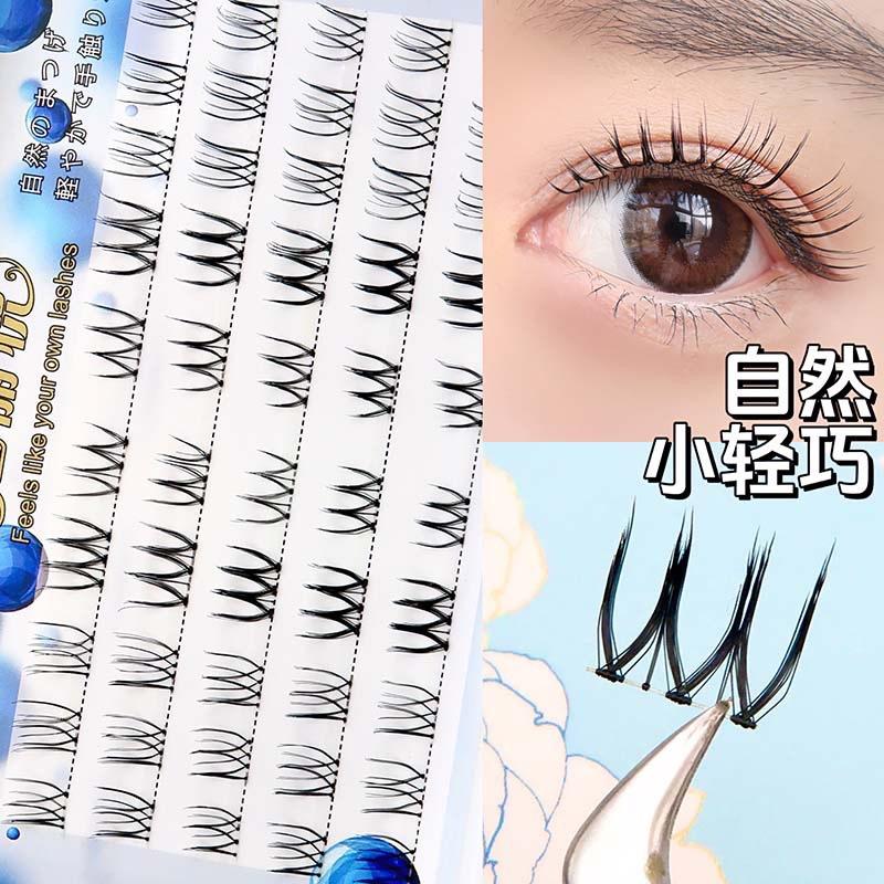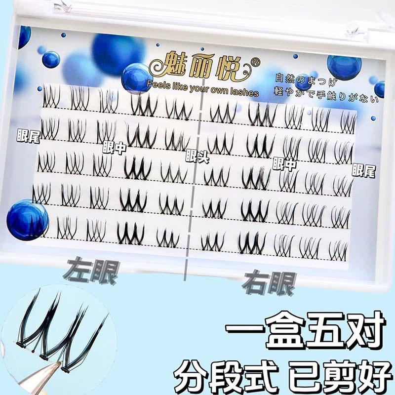 Pestañas postizas de trilogía perezosa Meili Yue, injerto de pestañas segmentadas para principiantes, un solo grupo en forma de V, artista de maquillaje, pestañas de dibujos animados