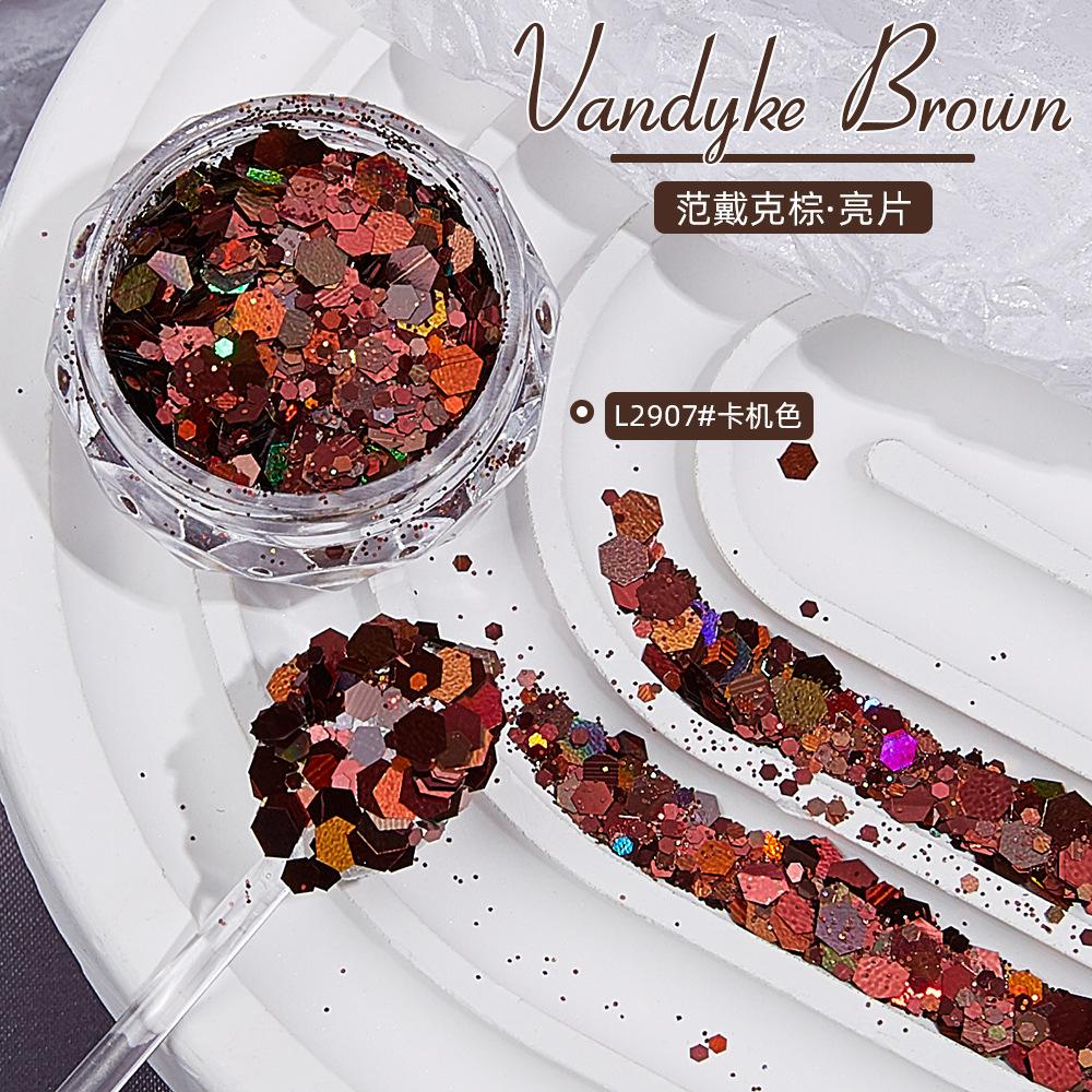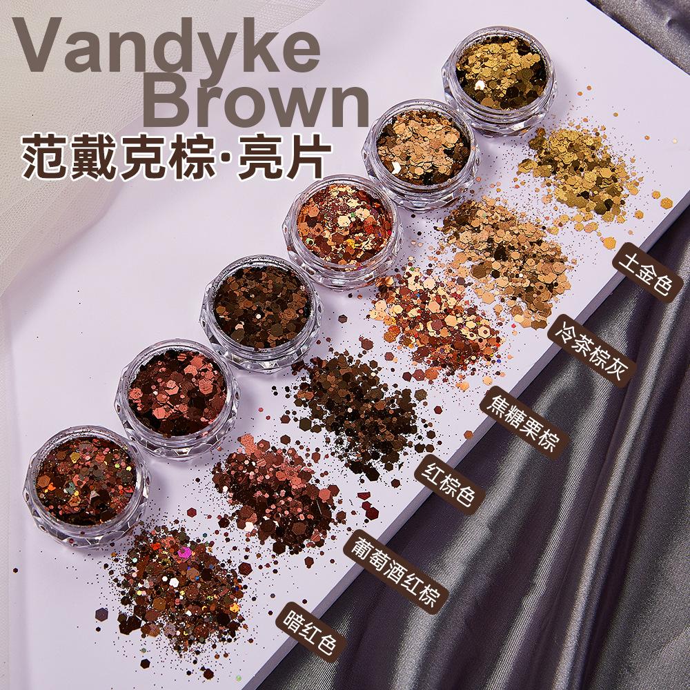 Popular celebridad online Van Dyke, uñas marrones con lentejuelas, purpurina en polvo, cáñamo, para usar en uñas, epoxi, material hecho a mano, decoración de uñas.