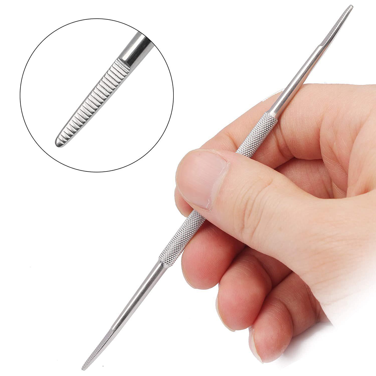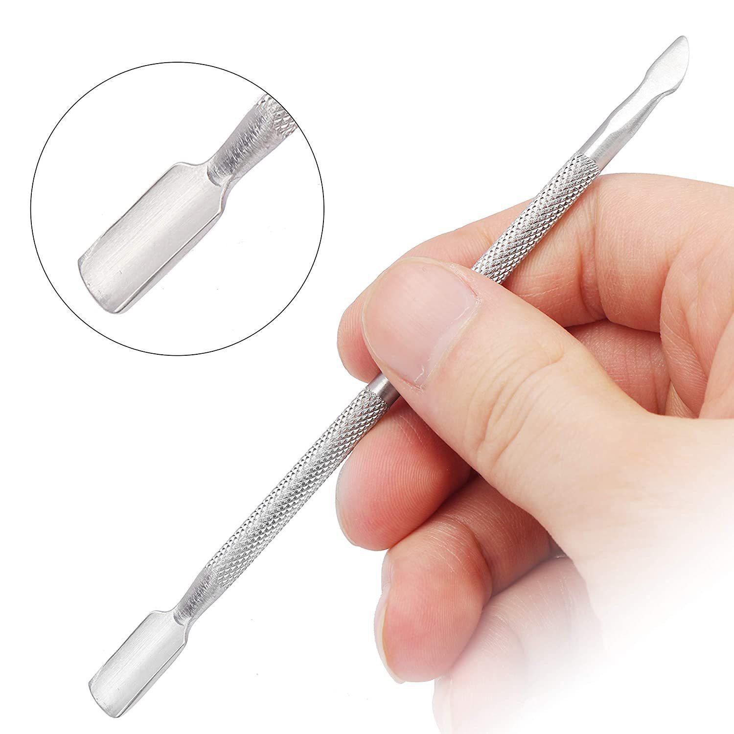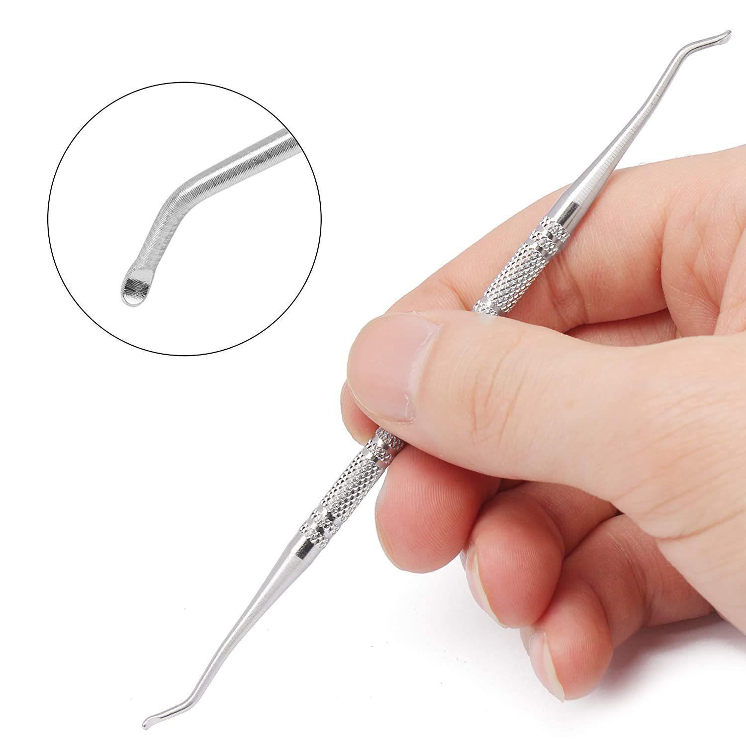 Dispositivo de extracción de uñas de doble cabezal de acero inoxidable de fábrica, lima de uñas de doble cara, lima para pulir uñas, herramienta para recoger suciedad de uñas