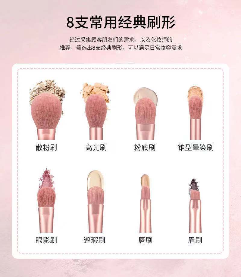 Nuevos 8 pinceles de maquillaje, adecuados para sombras de ojos, base, polvos sueltos, rubor, herramientas de belleza gigantes y suaves, venta al por mayor de fábrica.