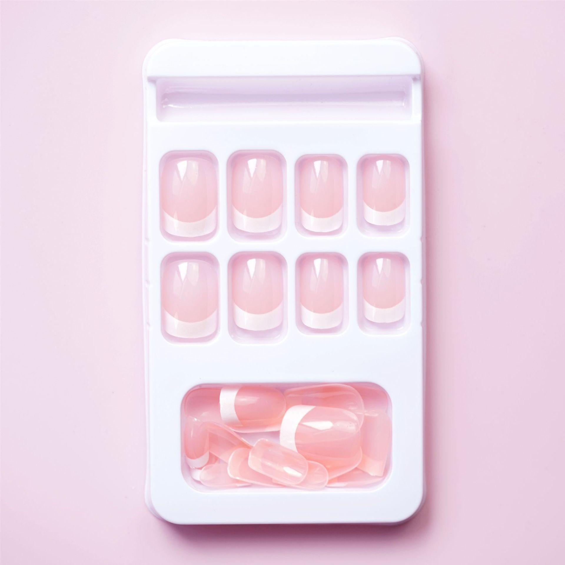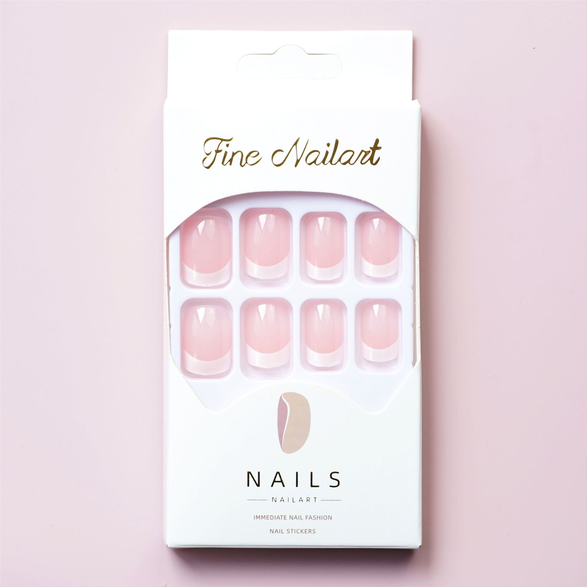 PD-210 Pieza de uña postiza corta estilo francés, pegatina para uñas, 24 piezas, venta al por mayor