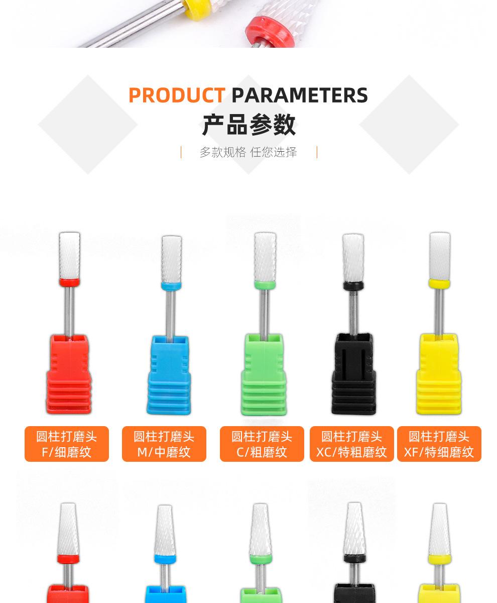 Cabezal de pulido de cerámica para manicura eléctrica, cabezal plano, lijadora de uñas eléctrica, cabezal de pulido, herramienta cilíndrica