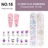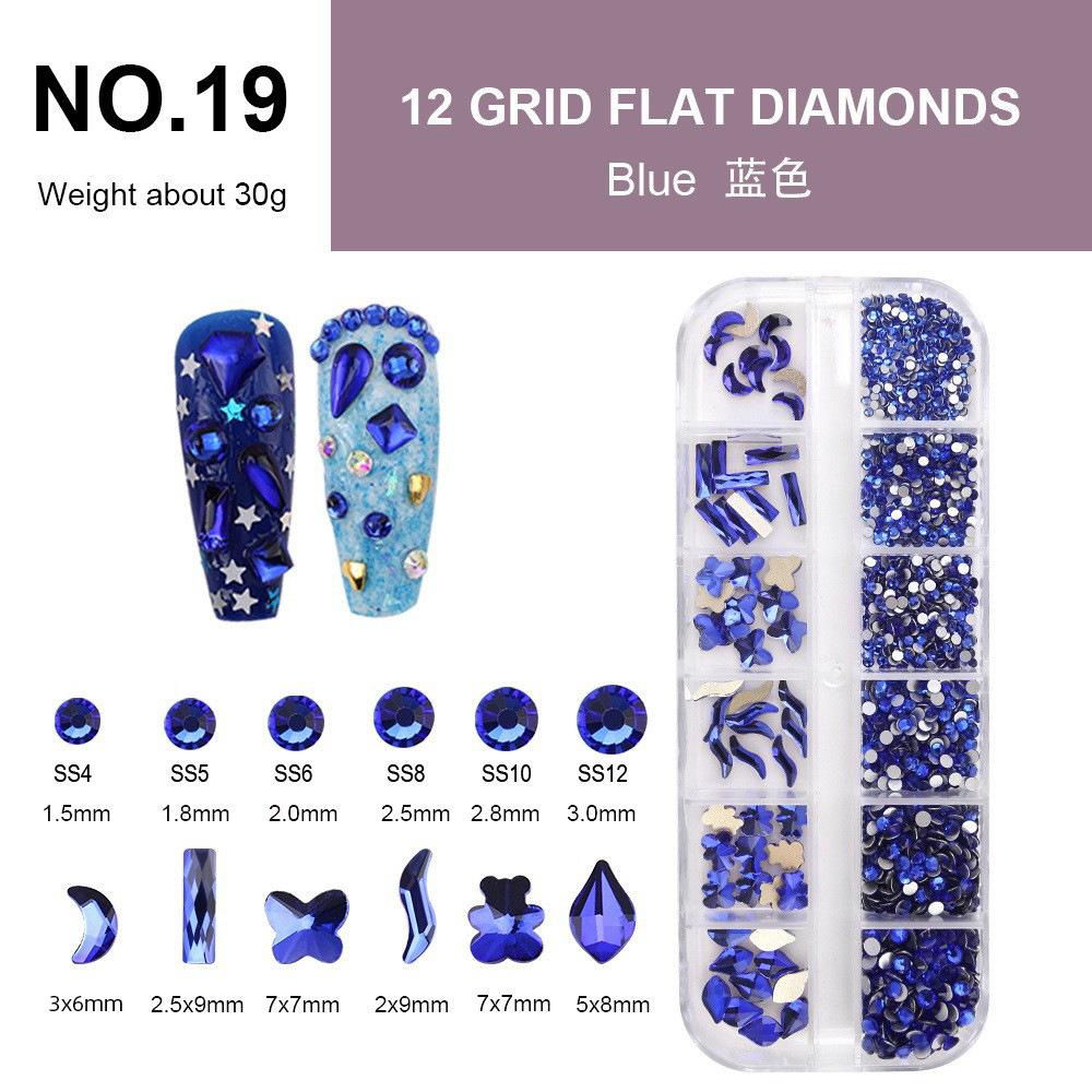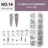 Tamaño 1 SS4 288 piezas SS5 288 piezas SS6 288 piezas SS8 288 piezas SS10 288 piezas SS12 288 piezas total alrededor de 1728 piezas + 10 piezas de cada tipo de pedrería de forma especial, 60 piezas en total