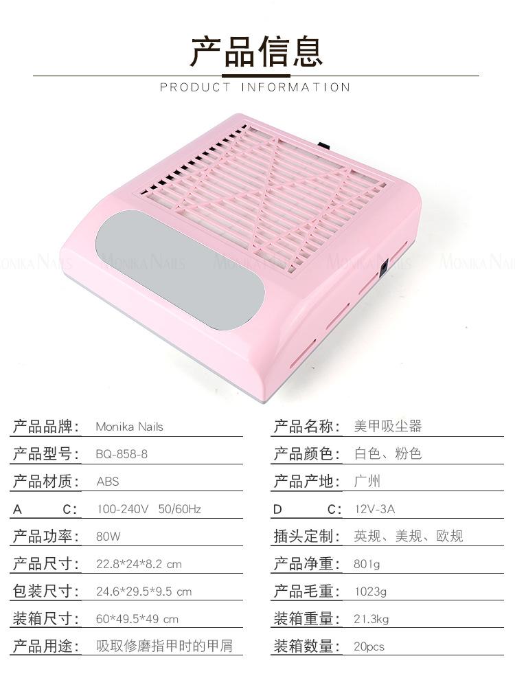 Aspiradora de Manicura Transfronteriza Estilo Japonés Nuevo con Velocidad Ajustable 80W con Filtro Almohadilla de Mano Aspiradora de Uñas de Escritorio Venta al por Mayor