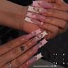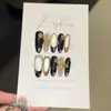 Uñas Postizas Populares Europeas y Americanas Hechas a Mano, Uñas Falsas Estereoscópicas Pintadas a Mano, Manicura Blanqueadora de Alta Gama con Forma de Almendra