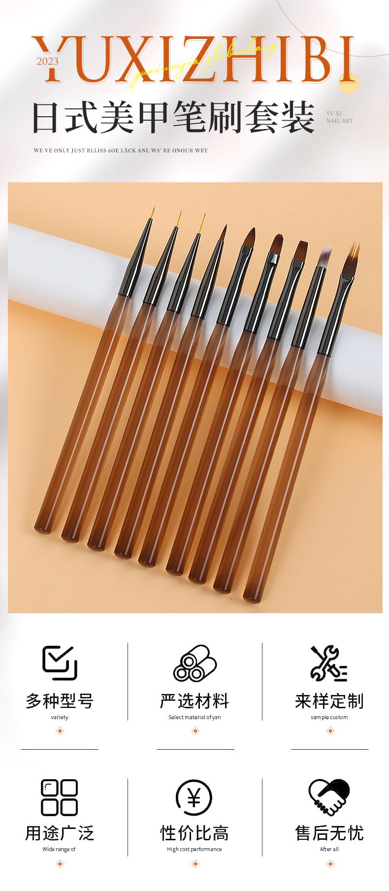 Pluma Manicura Japonesa Set de 9 Color Té Pintura Pincel Tallado Flor Floreciente Gradual Herramientas Nail Art Al Por Mayor