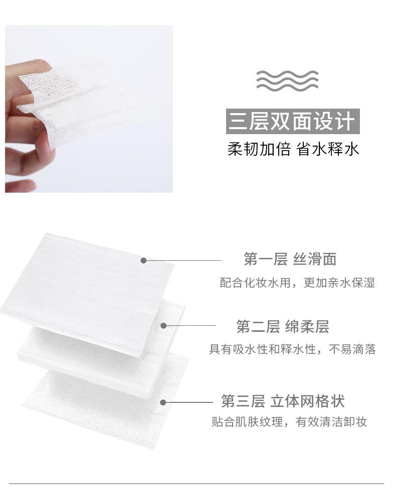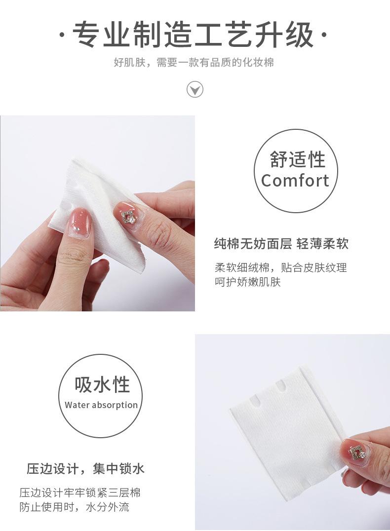 Venta al por mayor de fábrica de tres capas de borde prensado sándwich cuadrado de maquillaje de algodón compresa húmeda desmaquillante toalla de algodón de doble cara de doble efecto