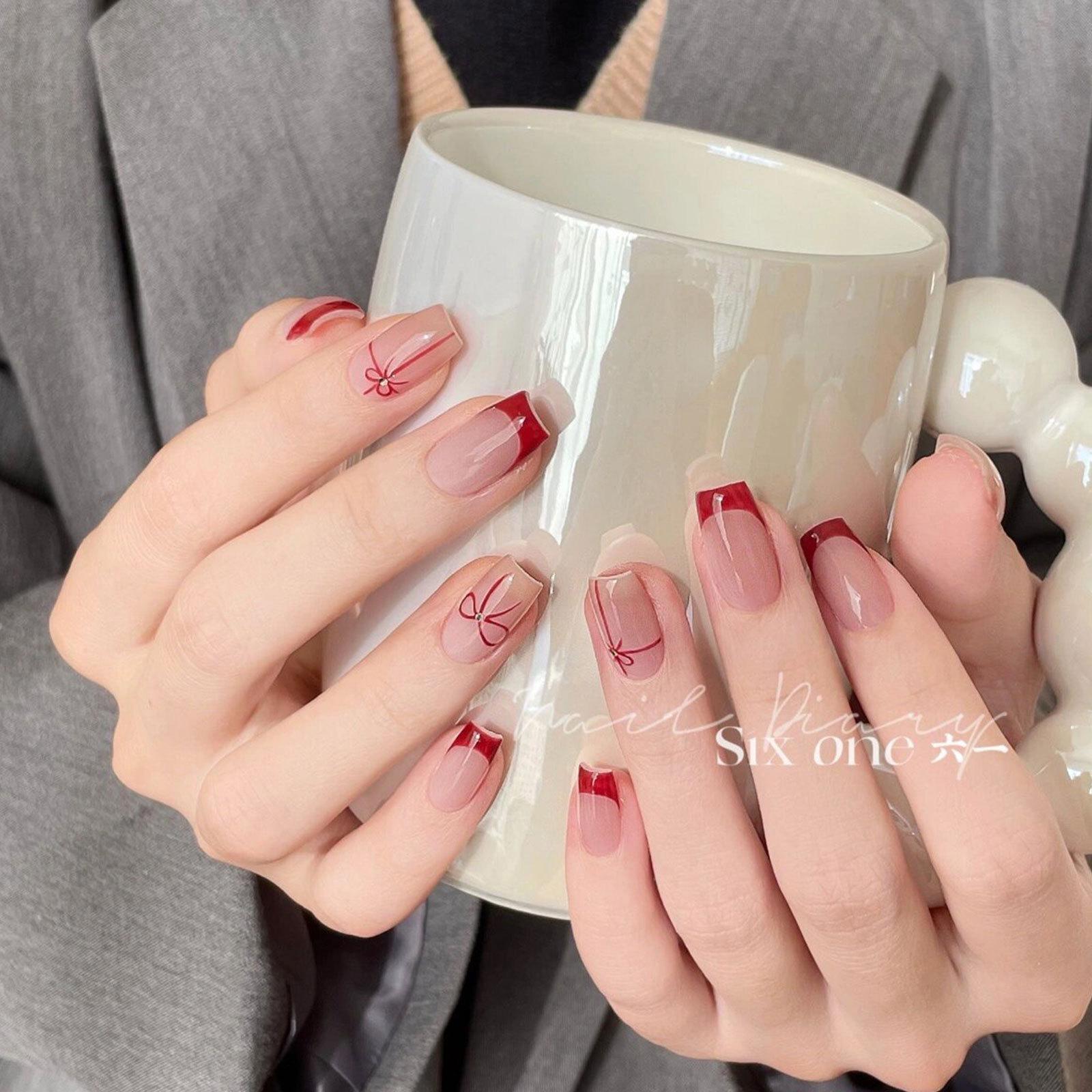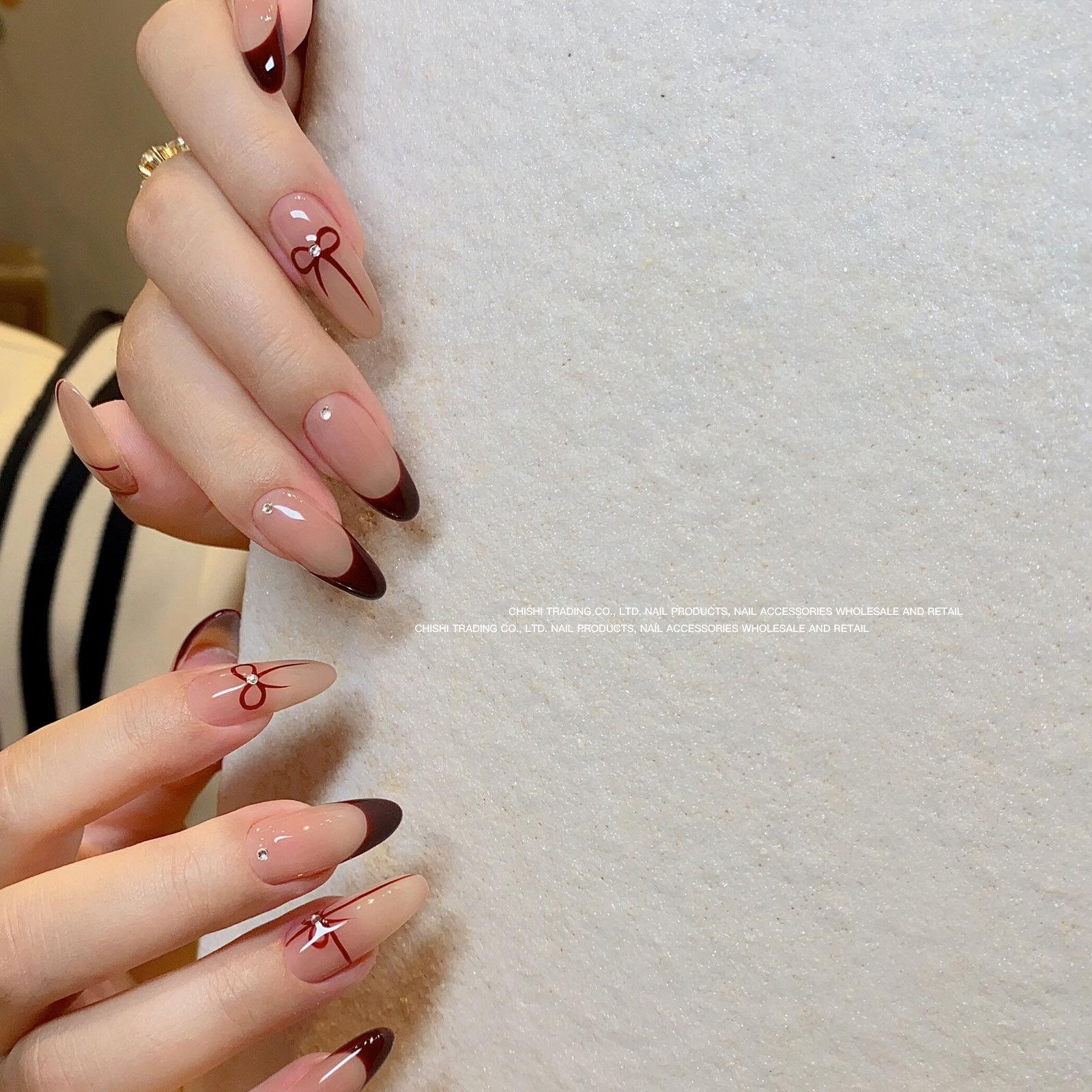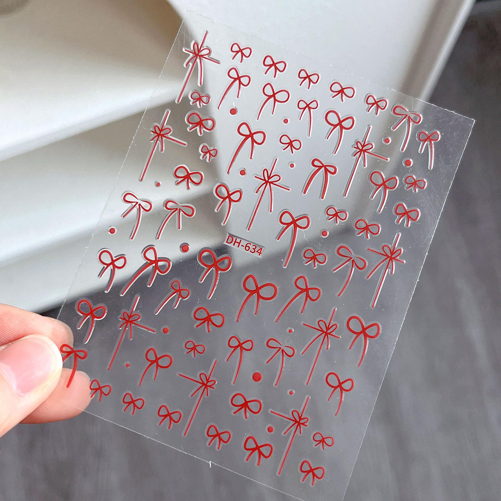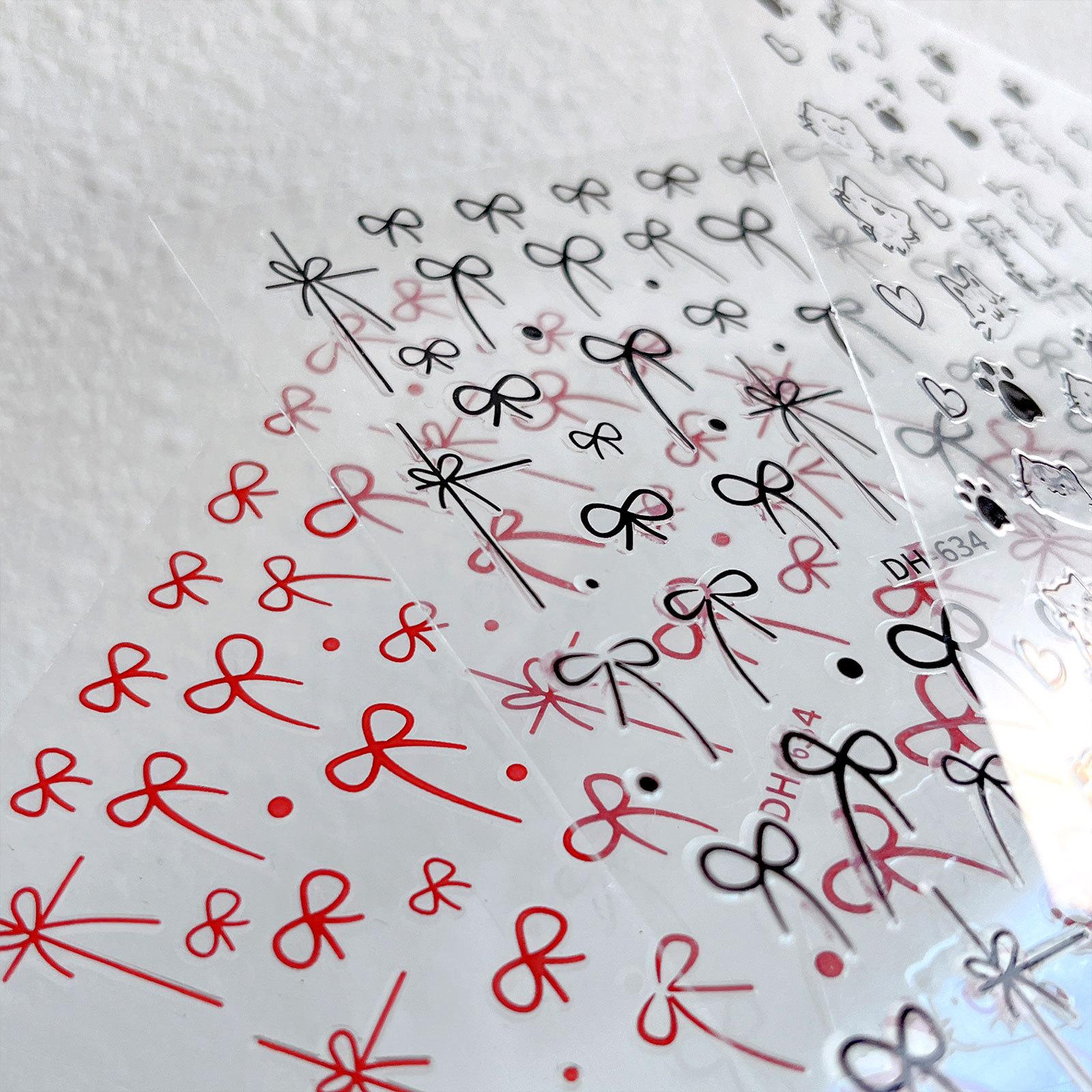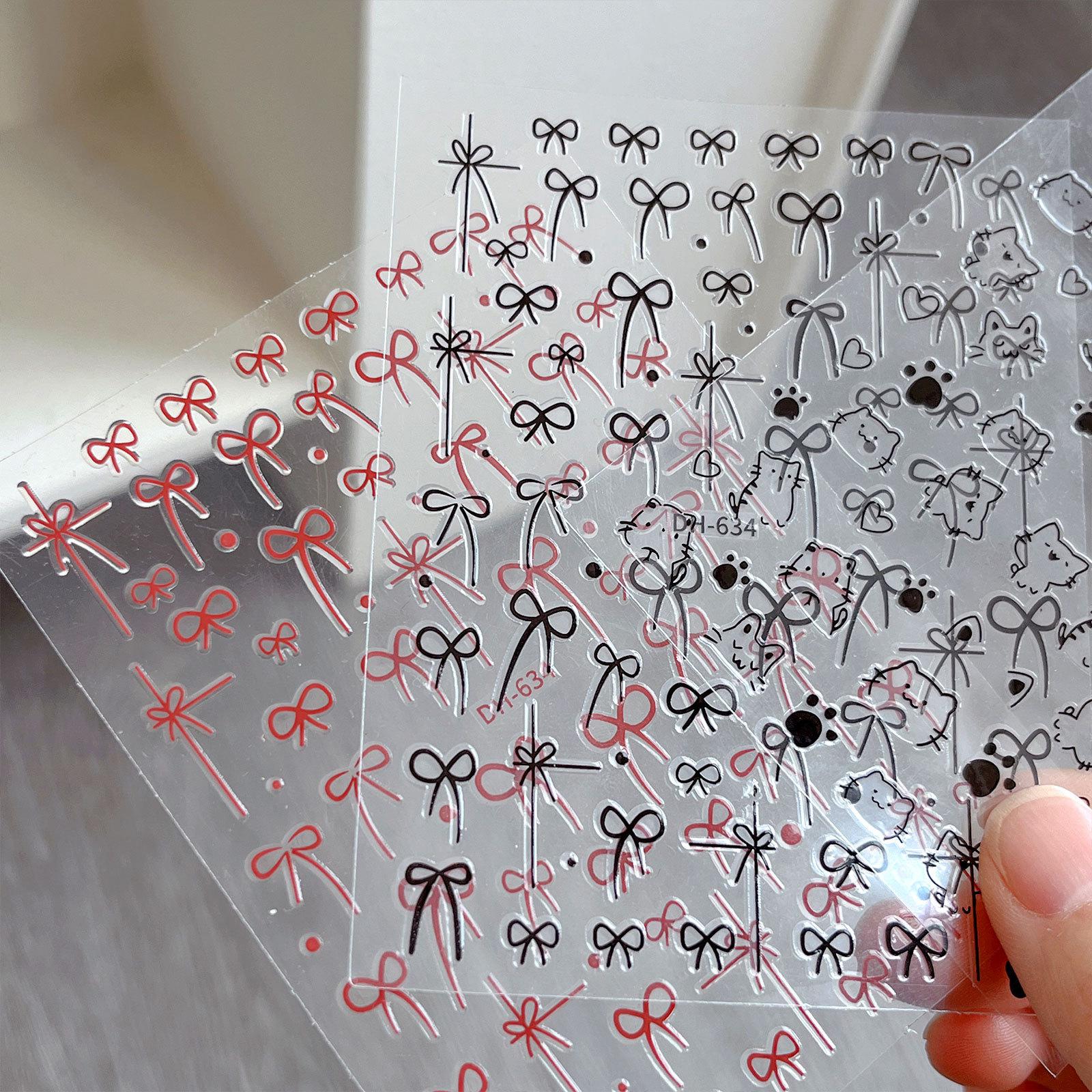 Pegatinas de uñas con lazo de celebridades populares en línea, lindas pegatinas de línea de gato, decoración de uñas con lazo rojo, venta al por mayor