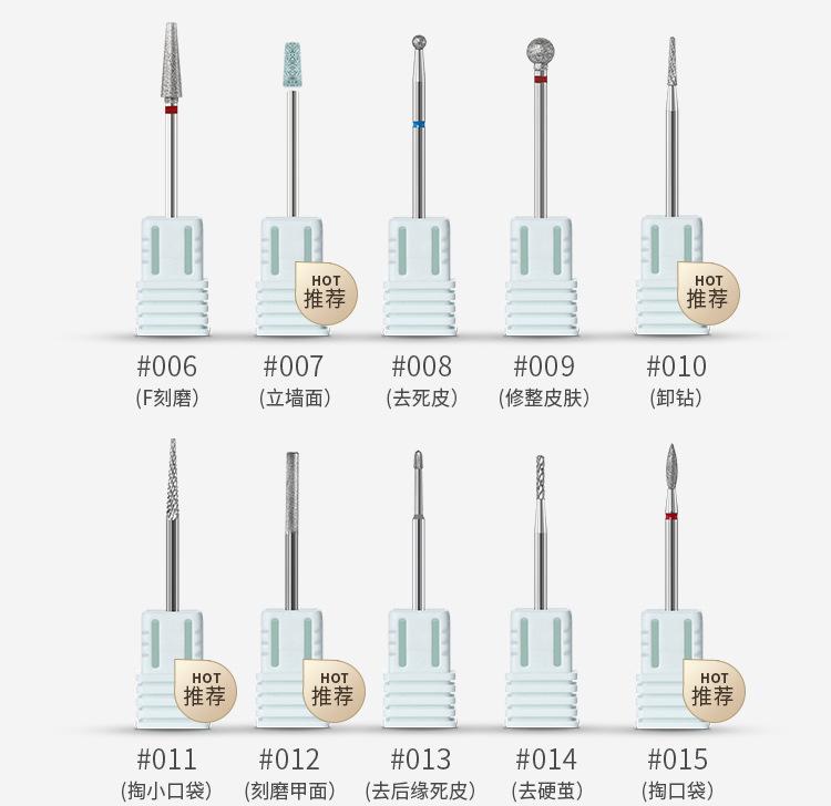 Máquina pulidora de uñas de cerámica exfoliante de pretratamiento de estilo ruso con cabezal de pulido de acero de tungsteno para disipar las uñas.
