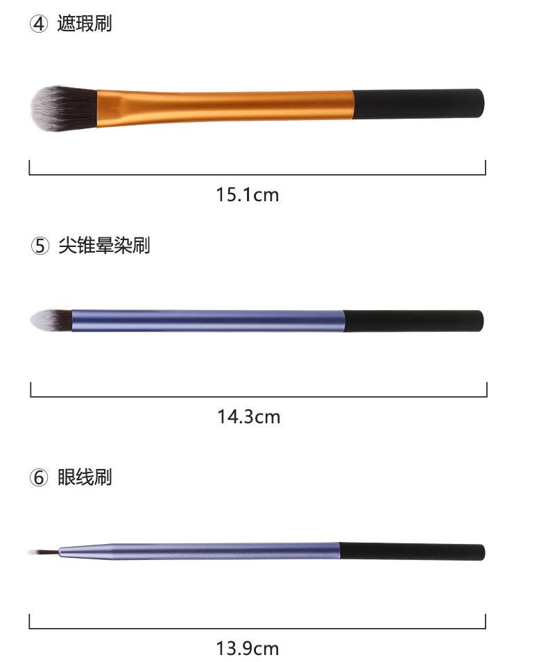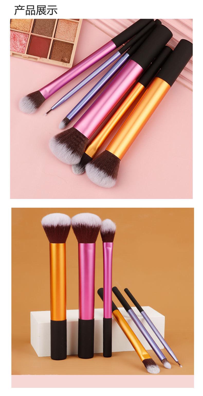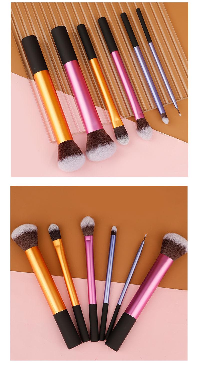 Nuevo Set de 6 Brochas de Maquillaje Transfronterizo Tubo Largo de Aluminio Brocha para Polvo Brocha para Base Portátil Herramienta de Maquillaje para Principiantes