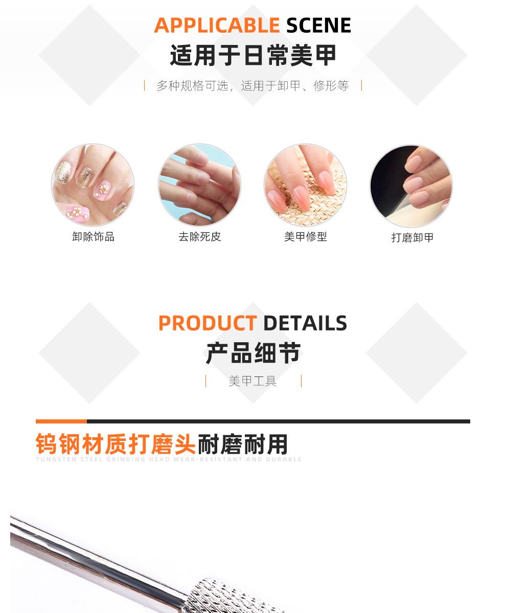 Cabezal de pulido para arte de uñas, pulido, eliminación de uñas, manicura, cabezal de pulido cilíndrico simple de acero de tungsteno plateado, herramienta para quitar uñas
