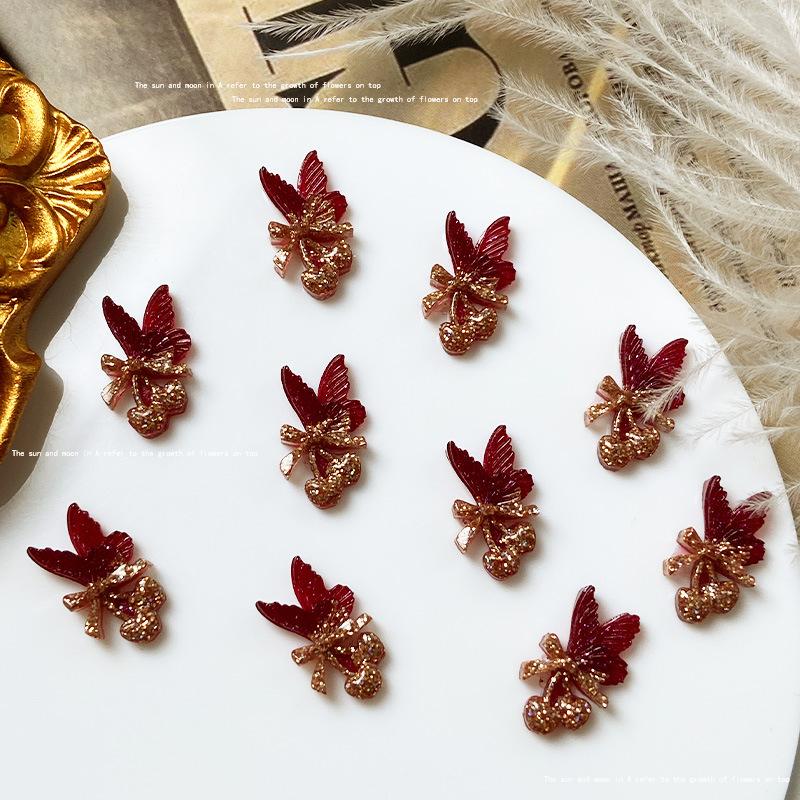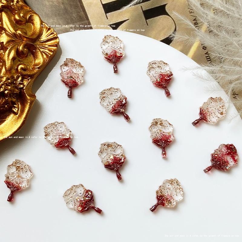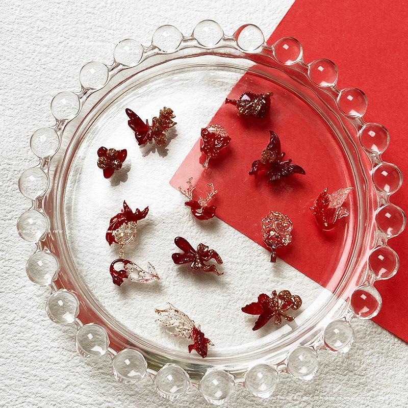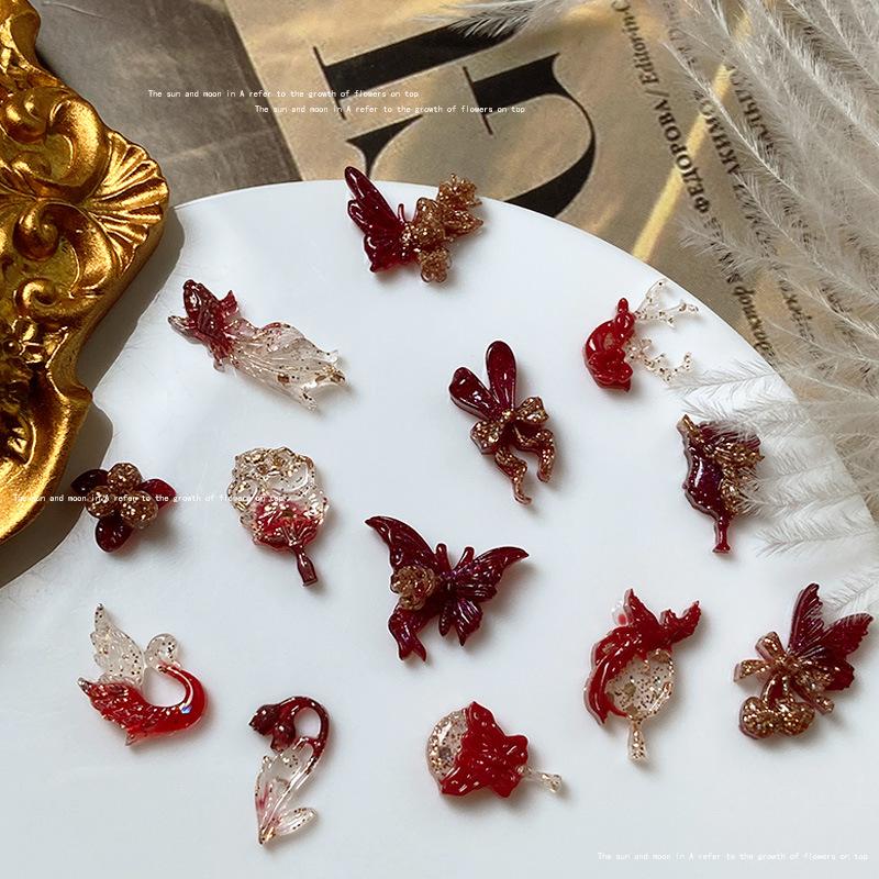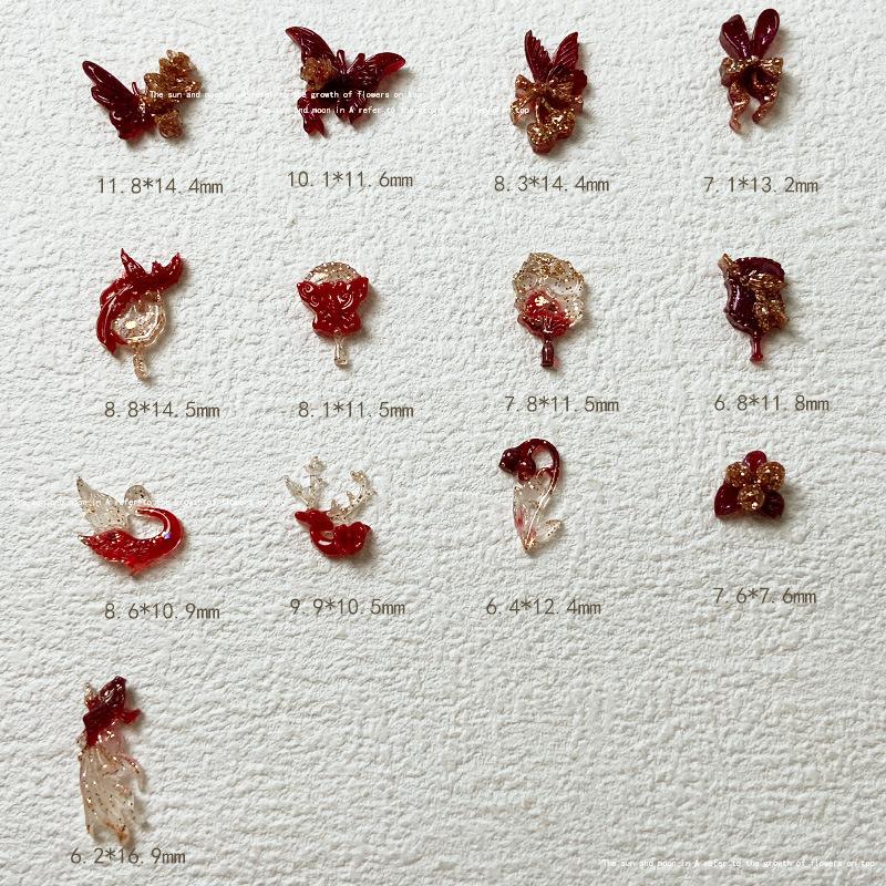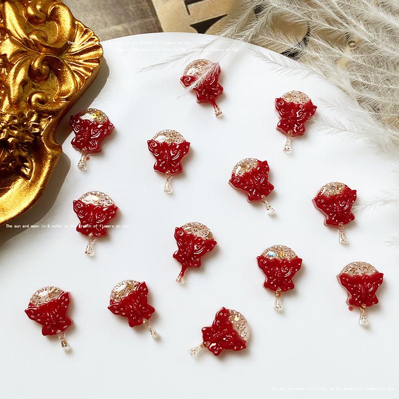 Use uña de alta calidad rojo dorado material para joyería de uñas paquete mixto estilo nacional abanico de fénix lazo joyería para uñas