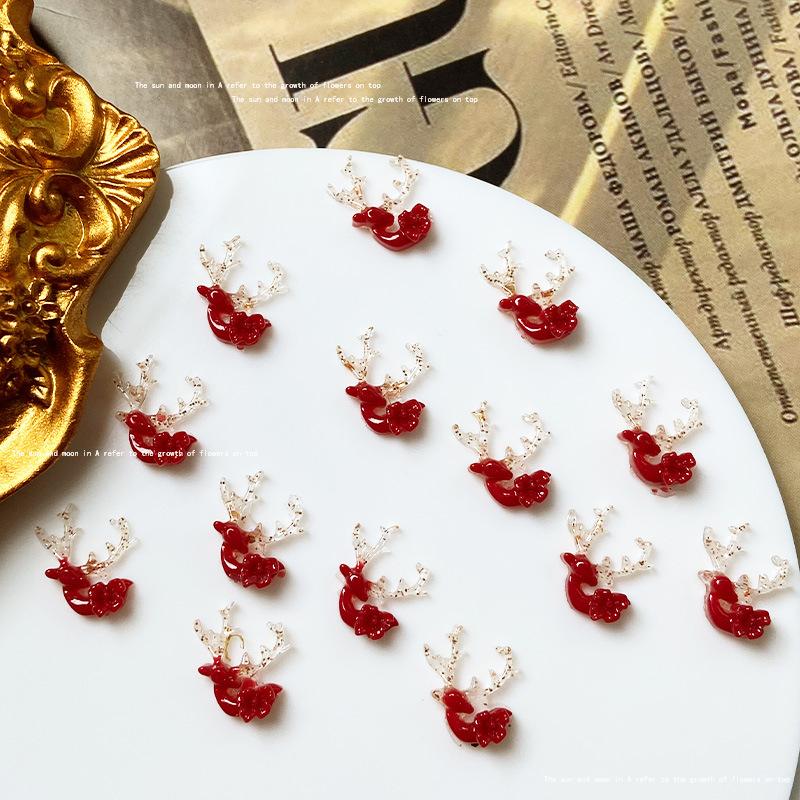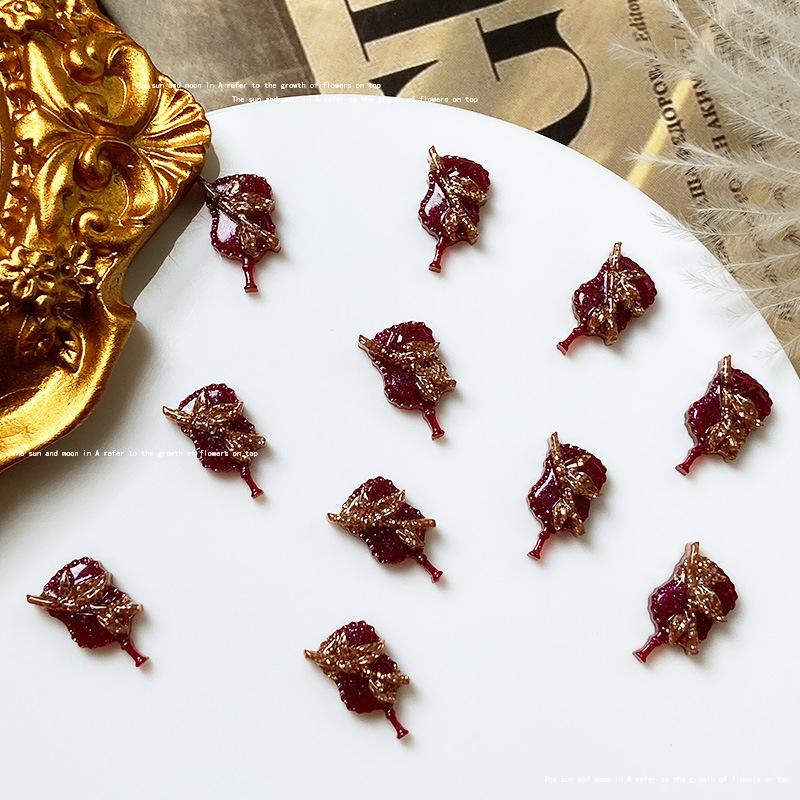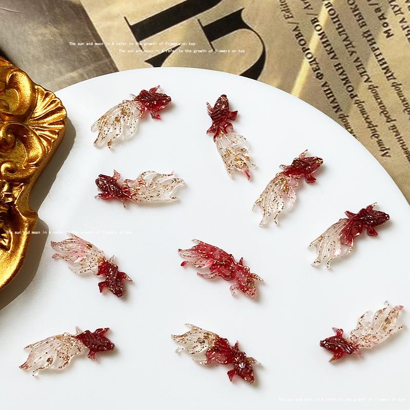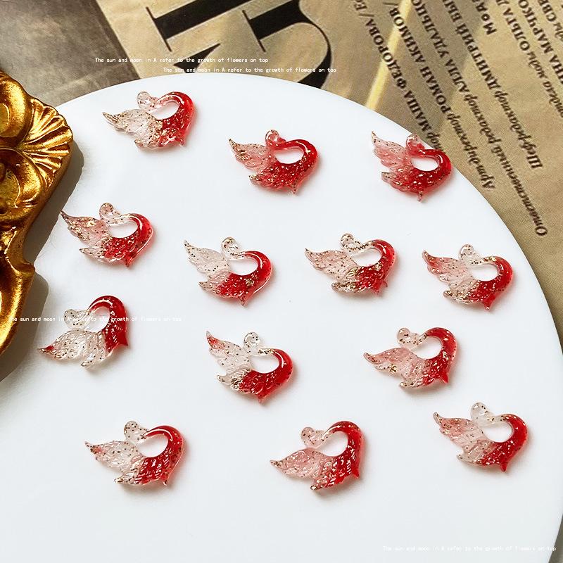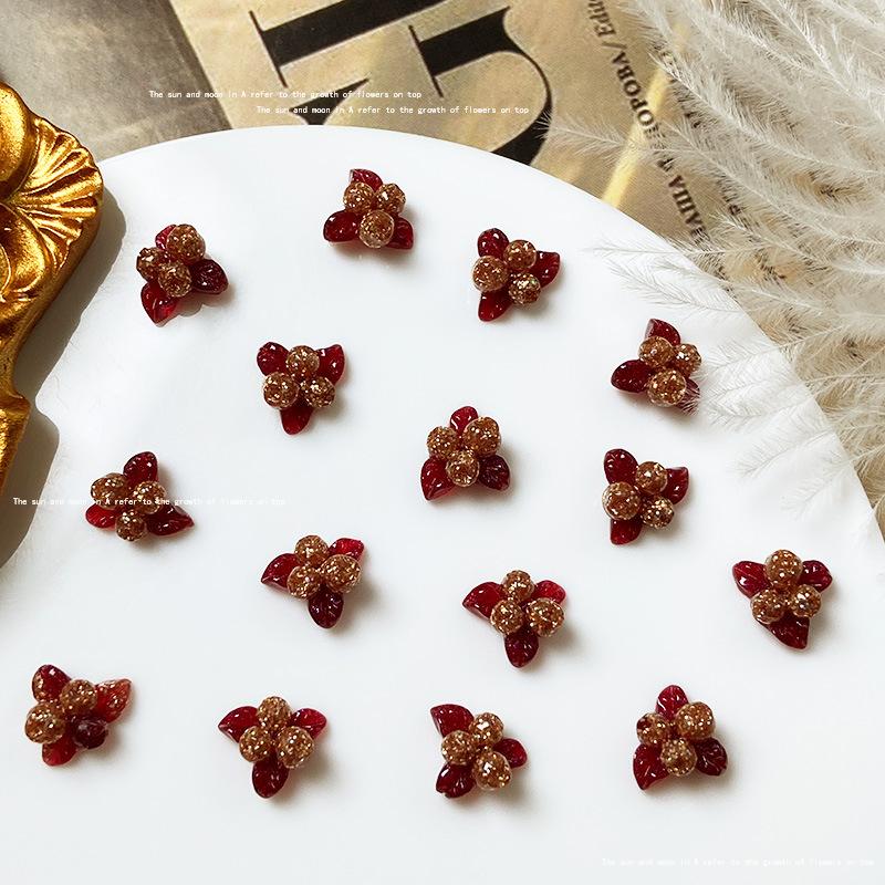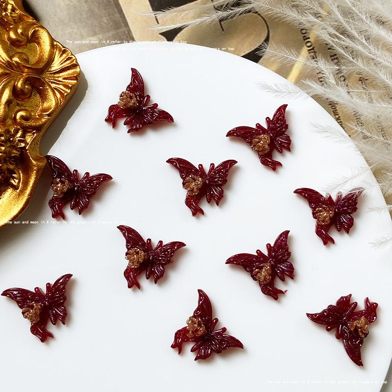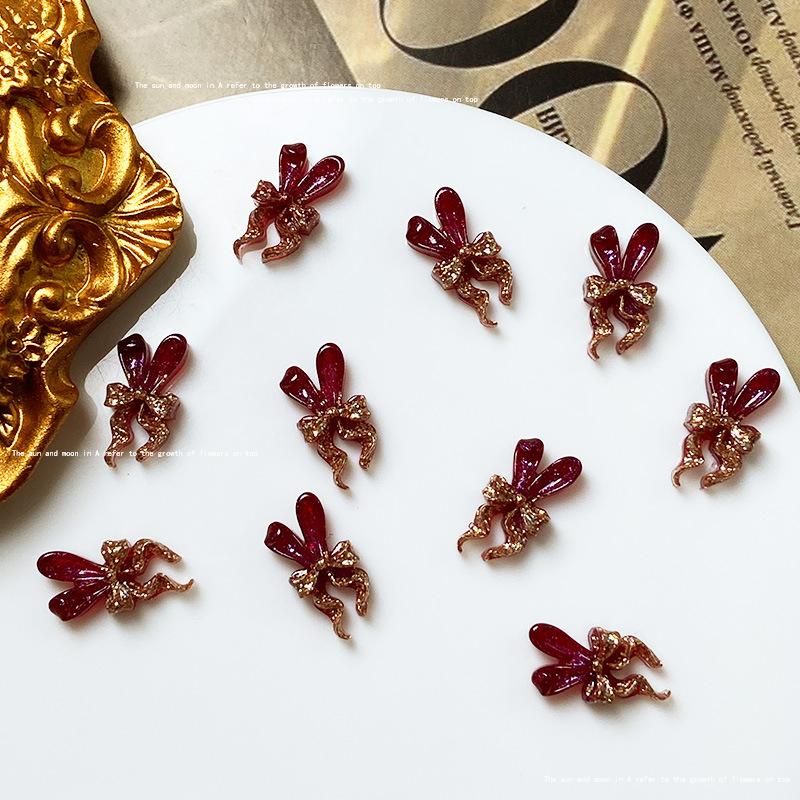 Use uña de alta calidad rojo dorado material para joyería de uñas paquete mixto estilo nacional abanico de fénix lazo joyería para uñas