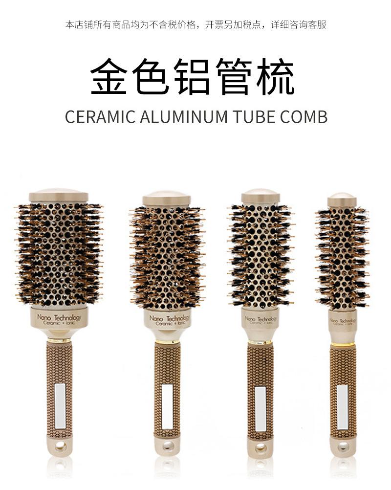 Peine rizador dorado de Amazon, peine cilíndrico con cerdas grandes, peine curvo de cerámica, peine de tubo de aluminio, peine rodante, peine de peluquería, traje