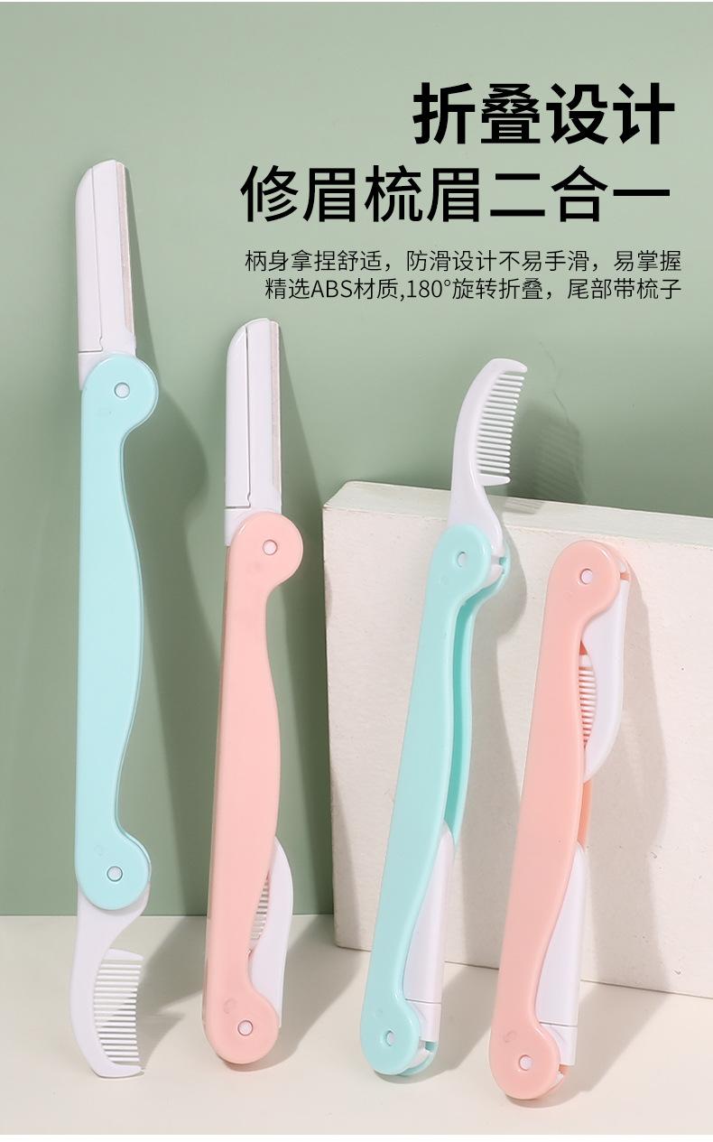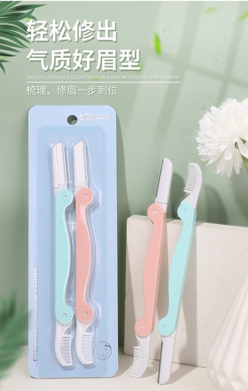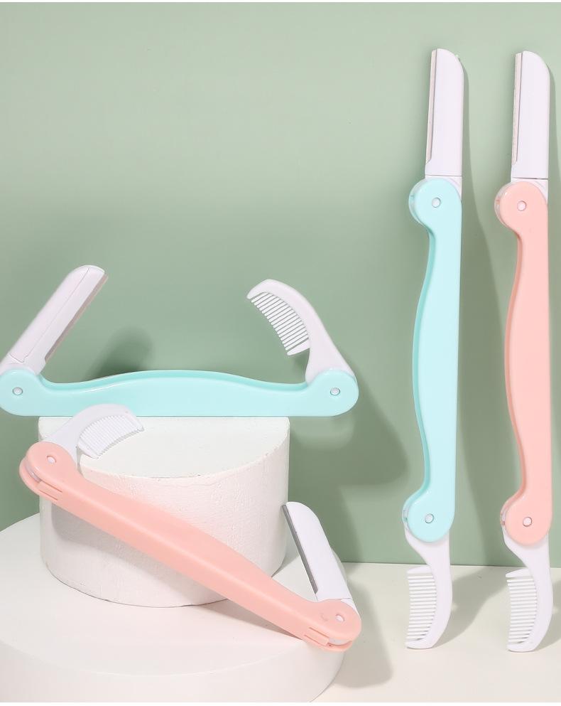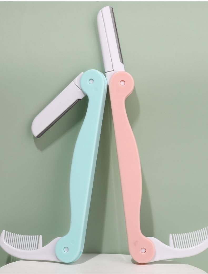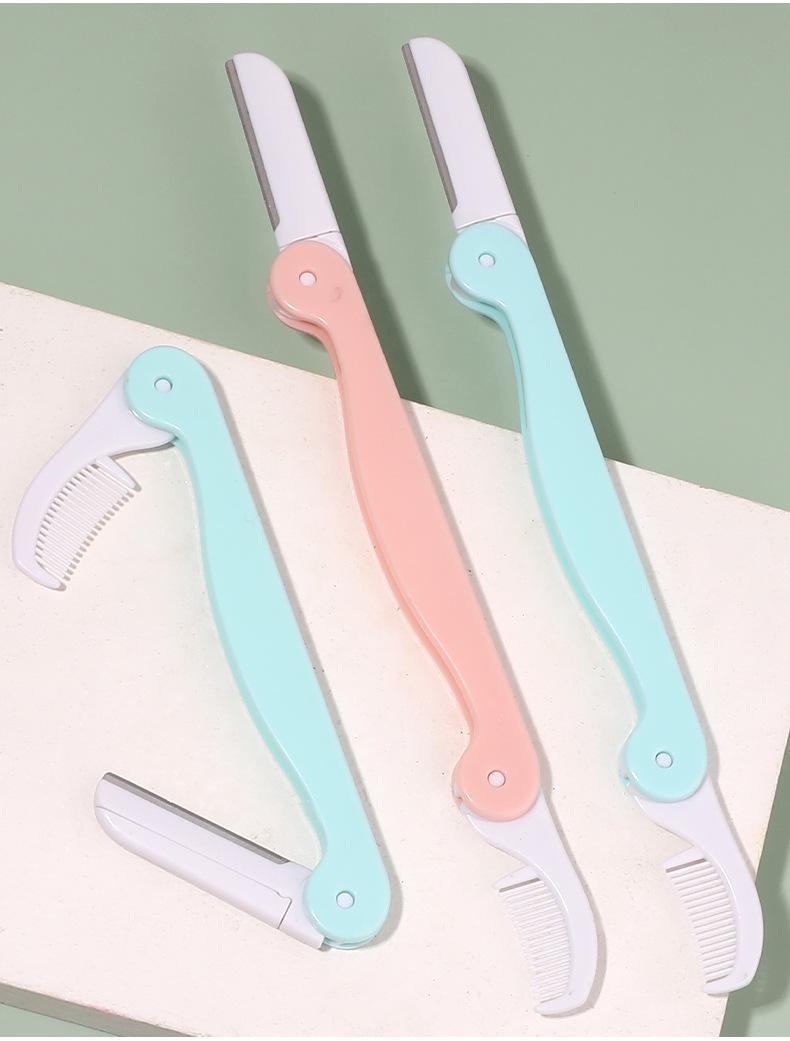 2 cuchillos plegables de doble cabeza para dar forma a las cejas con peine, raspador de cejas de acero inoxidable, herramientas de belleza, traje para dar forma a las cejas, venta al por mayor de fábrica