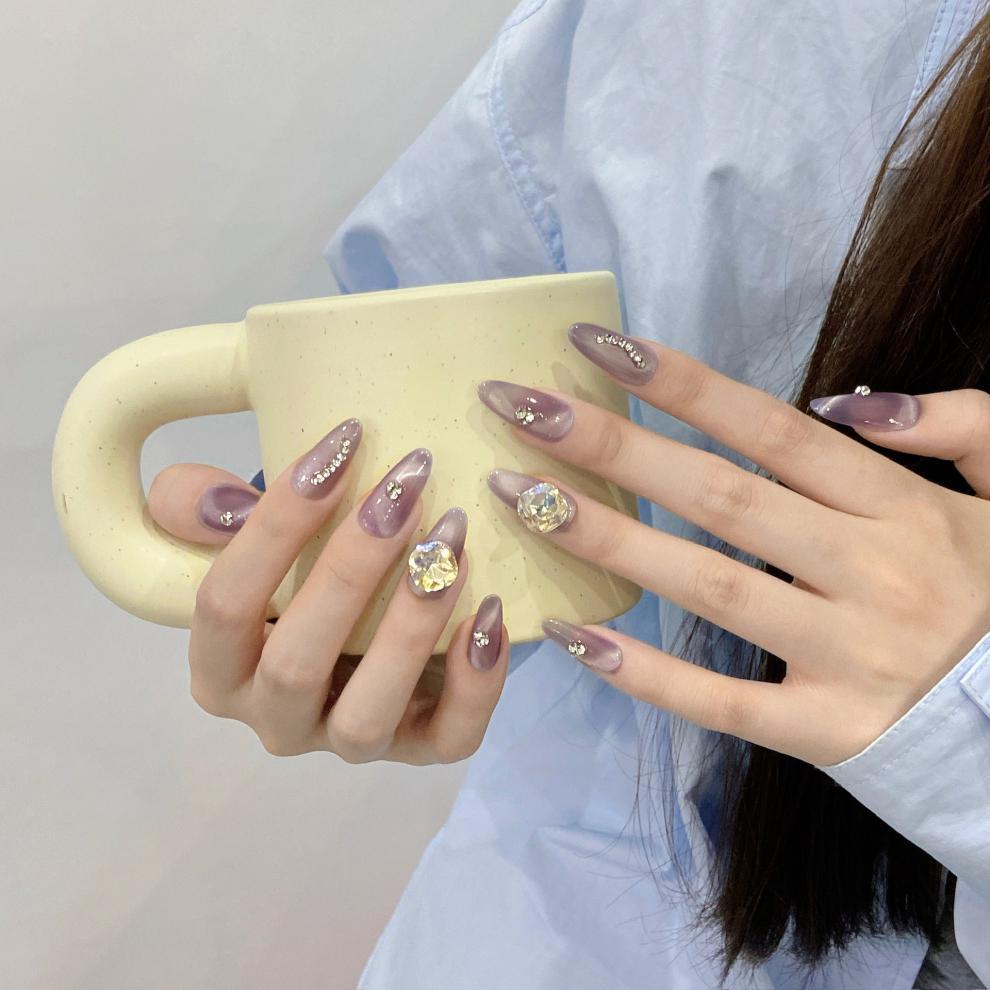 Parche de uñas desgastado a mano puro, arte de uñas con acabado morado, bulbo, ojo de gato, espejo mágico, ángel milagroso desmontable