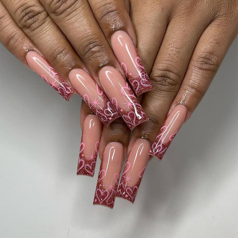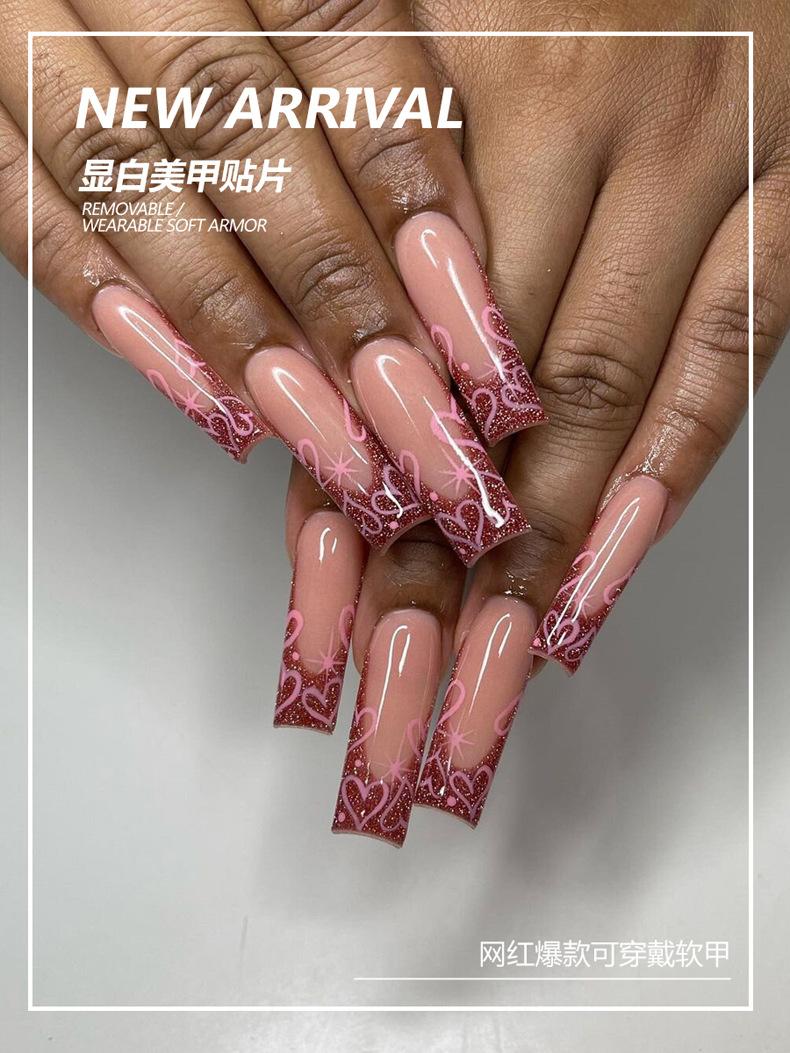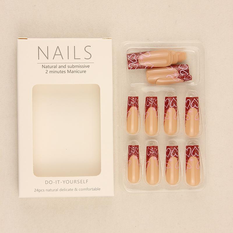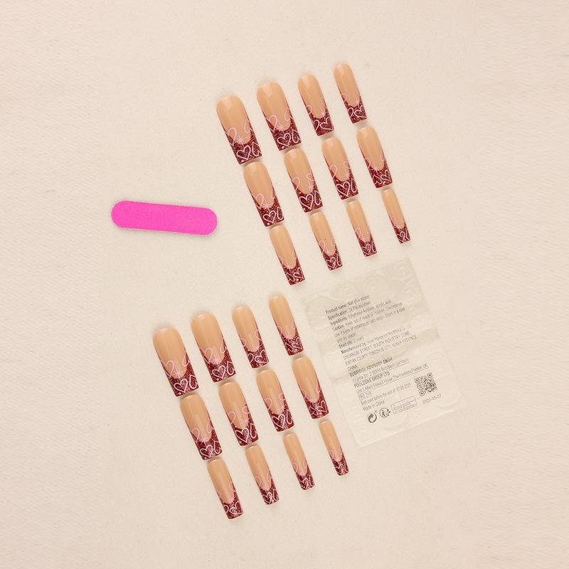 Compra Parche de uña postiza de estilo europeo y americano con diseño de vino tinto largo y acabado cuadrado, pegamento de gelatina al por mayor al por mayor en Joom.pro