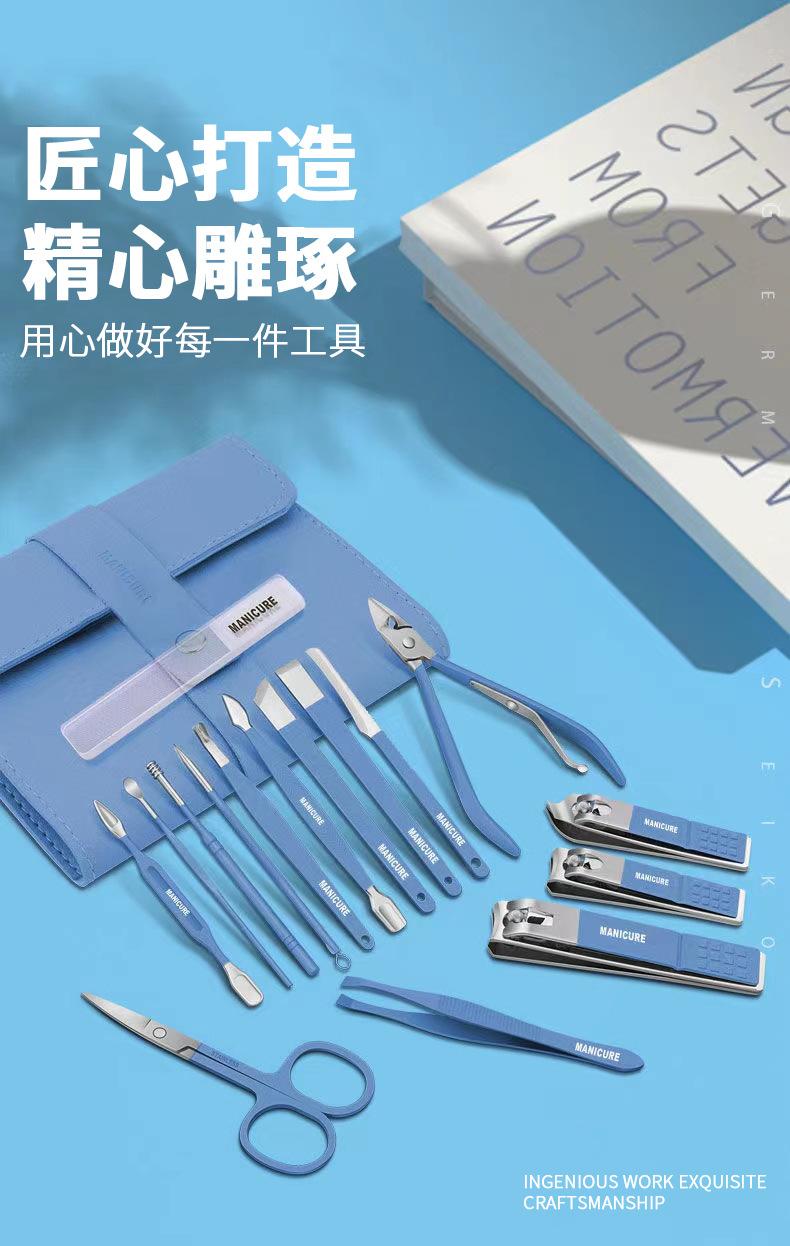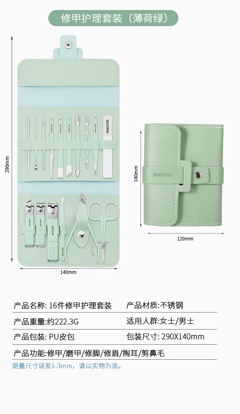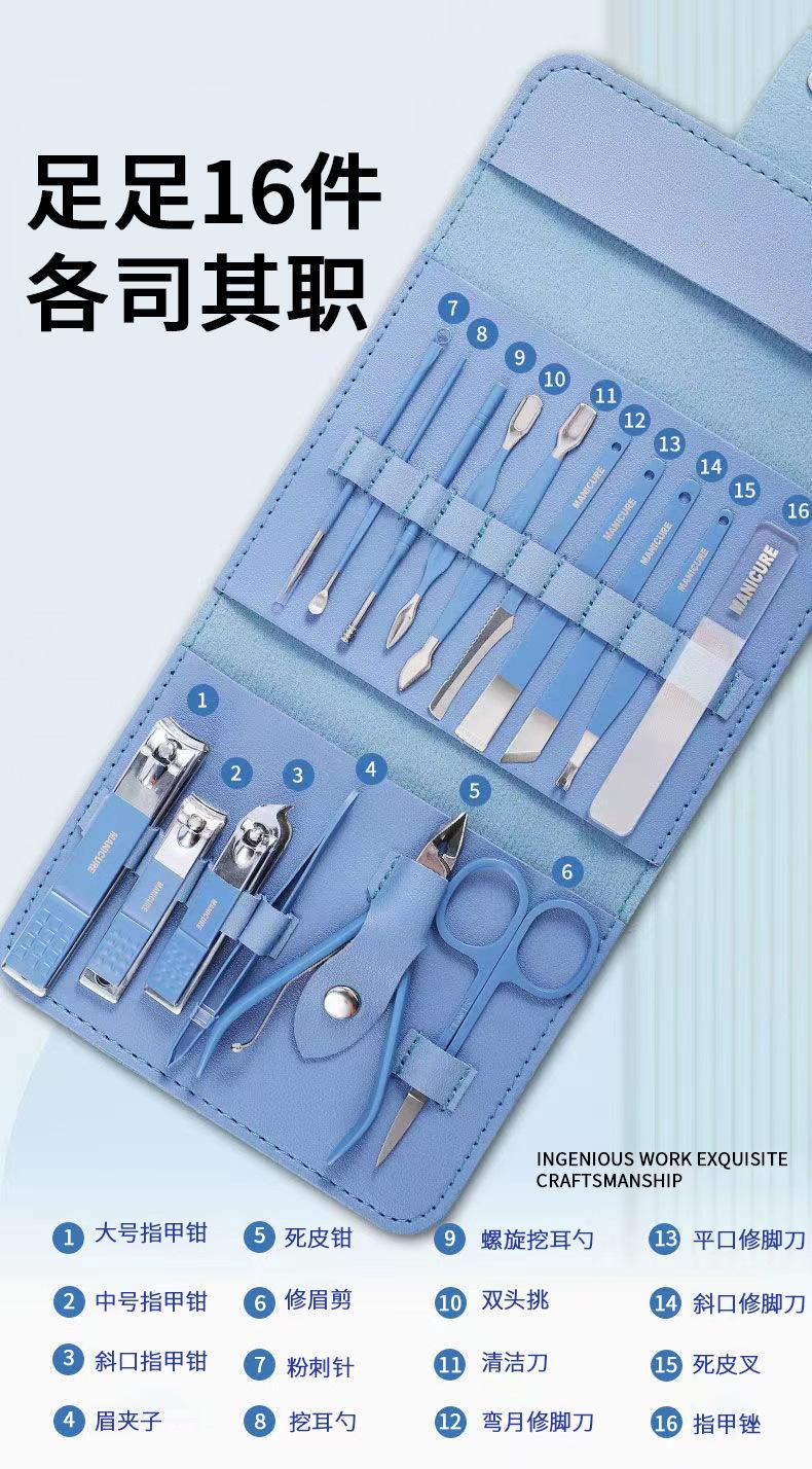 Cortaúñas, juego de 16 piezas, bolsa plegable, cortaúñas, cortaúñas para manos y pies, herramientas de pedicura