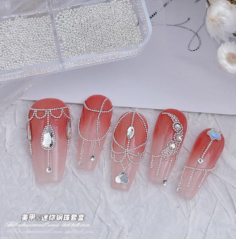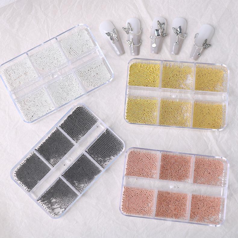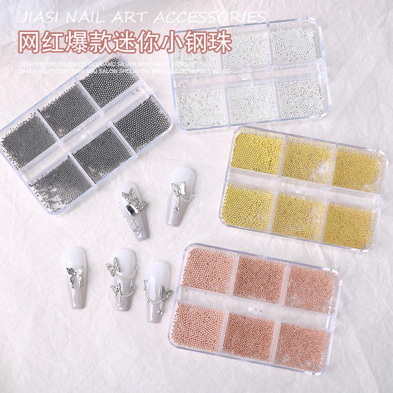 Bola de clavo pequeña de acero, metal blanco plateado, 0,6 mm, pequeña joyería dorada, mini decoraciones para uñas DIY