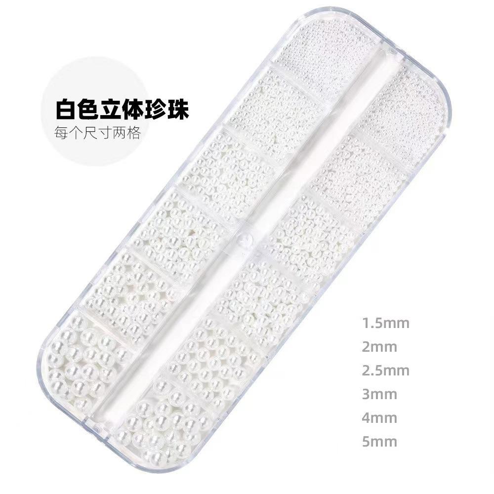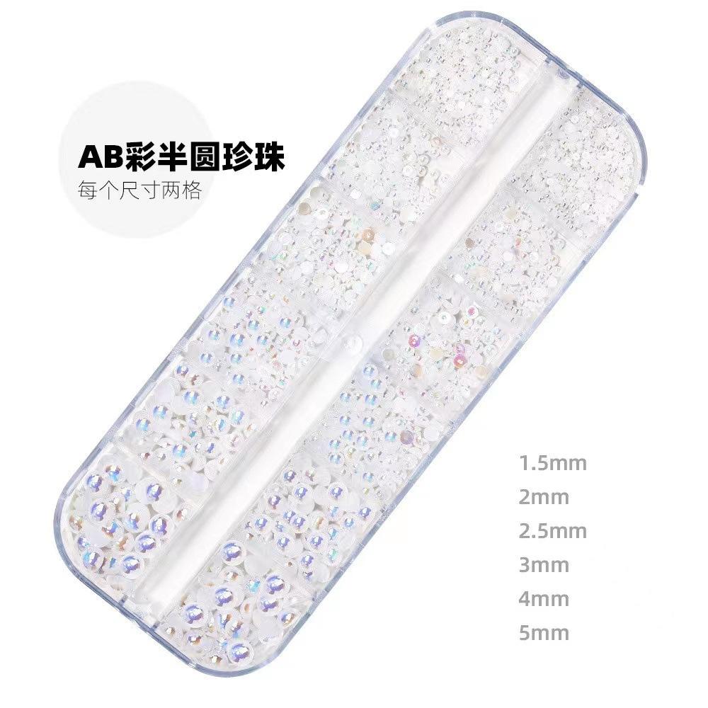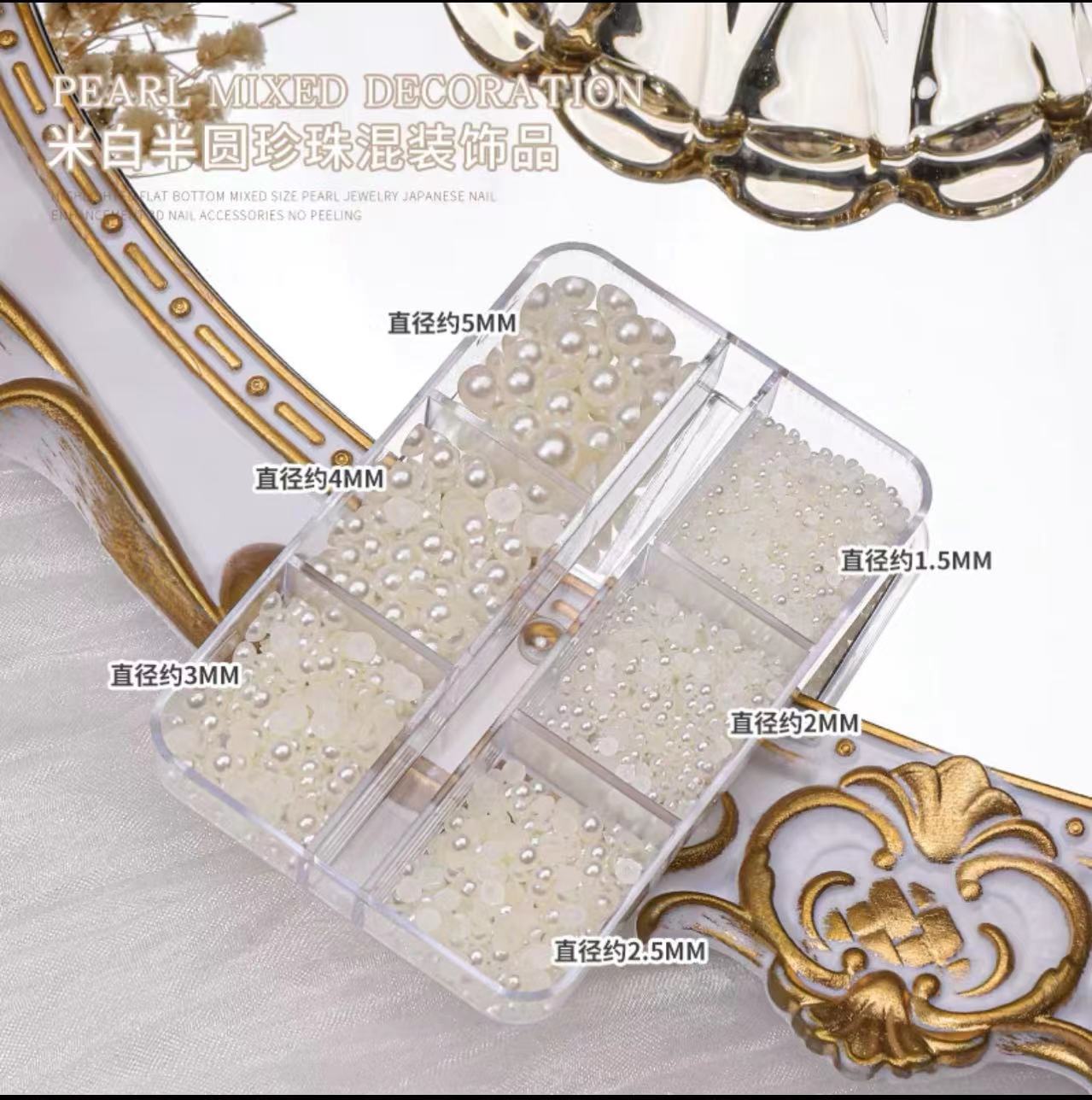 Joyería de perlas para uñas de estilo japonés, semicírculo beige, 12 cuadrículas, alto brillo, tamaño mixto, accesorios de decoración para uñas tridimensionales, nuevo
